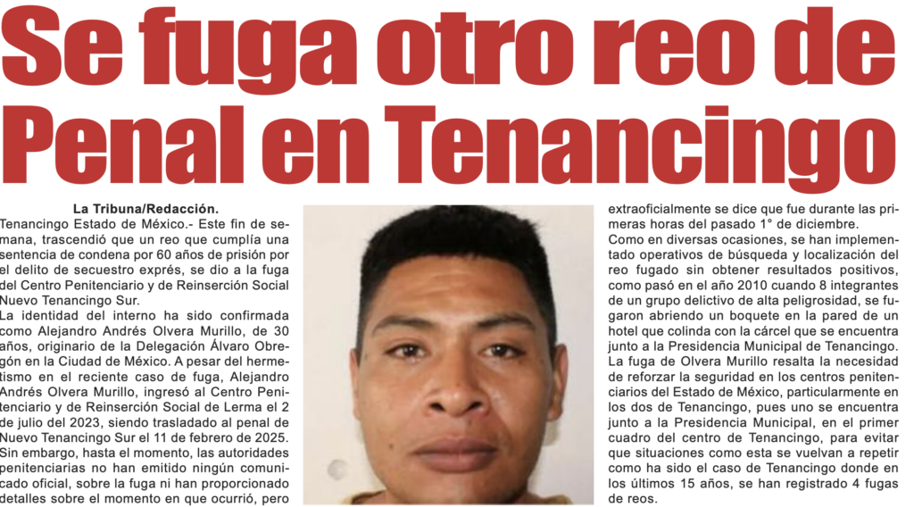 - https://www.milenio.com/policia/se-fuga-reo-penal-de-tenancingo-edomex-desata-investigacion
