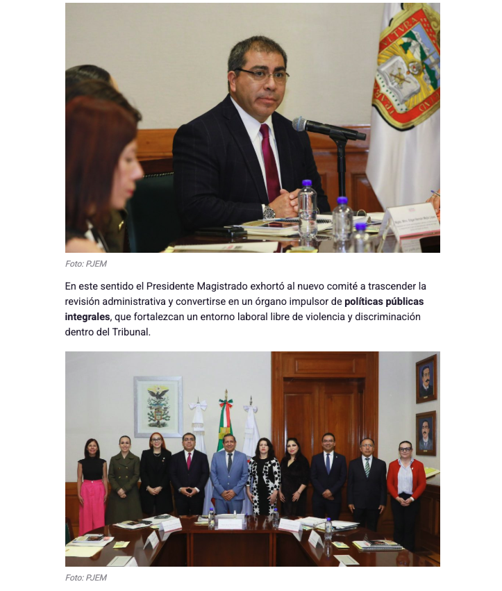 En este sentido el Presidente Magistrado exhortó al nuevo comité a trascender la revisión administrativa y convertirse en un órgano impulsor de políticas públicas integrales, que fortalezcan un entorno laboral libre de violencia y discriminación dentro del Tribunal.