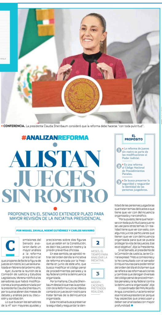 Comisiones del Senado avalaron darle un mayor análisis a la reforma presidencial que propone de facto la figura de jueces sin rostro, la cual será analizada en febrero del próximo año.