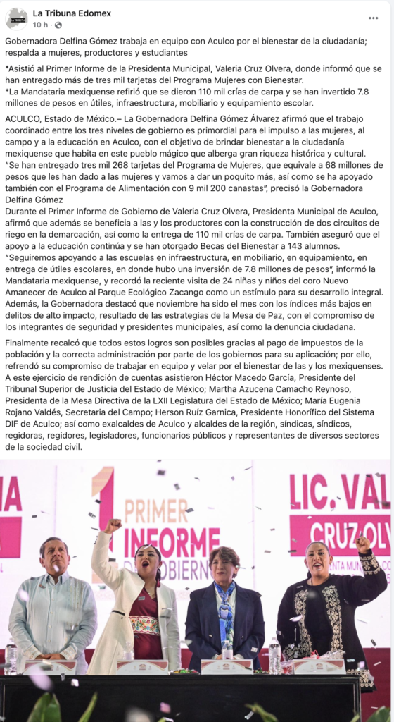 - https://www.facebook.com/LaTribunaEdoMex/posts/pfbid04axiFRdwhHGyy8CiCHz6jVU17LQ6TA5isjqUNh23foJJJJhRjN4jAM6n56DFVXdvl