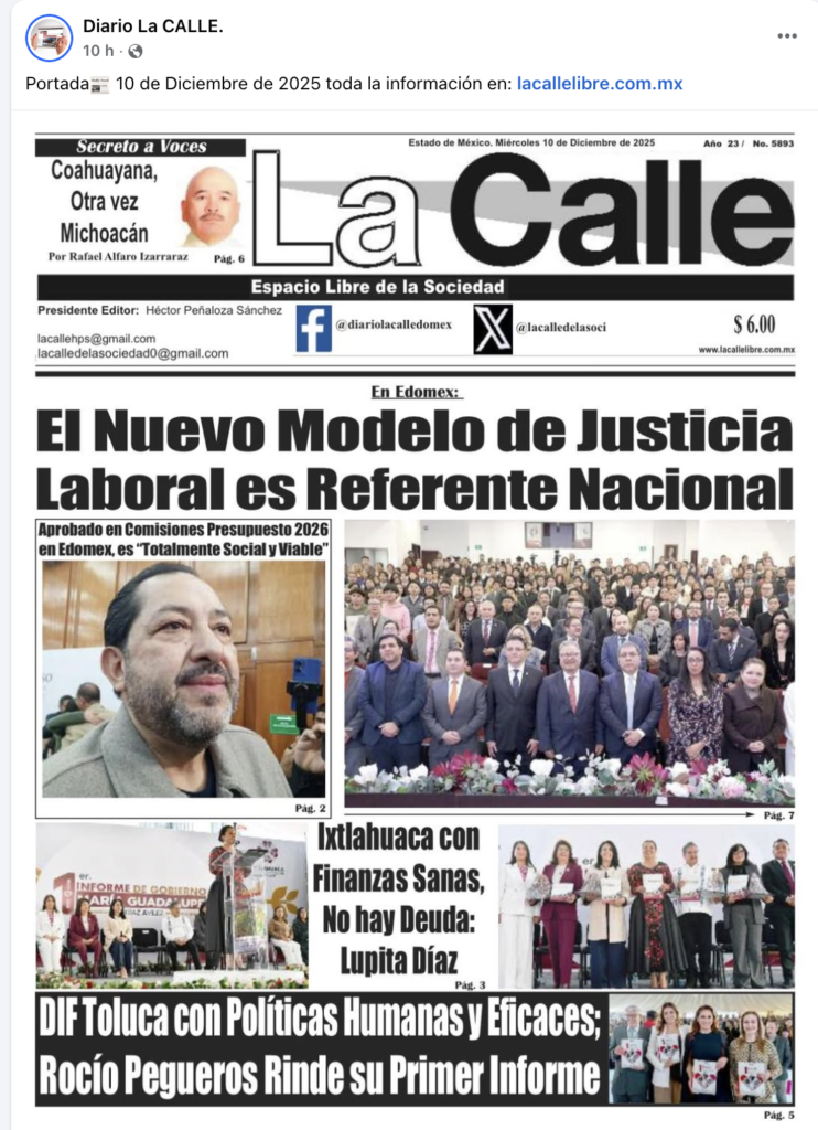 - https://www.facebook.com/diariolacalledomex/posts/pfbid0jLwaTuTmR4JvEGg2a1LQmaZQPsMhj7EQqFkjak4uqimasUhoteFPhuT5udxZYXBMl