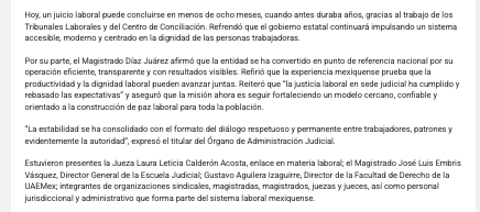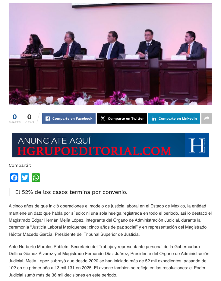 - https://diarioamanecer.com.mx/justicia-laboral-mexiquense-celebra-cinco-anos-de-consolidacion-con-mas-de-52-mil-asuntos-atendidos-y-cero-huelgas/