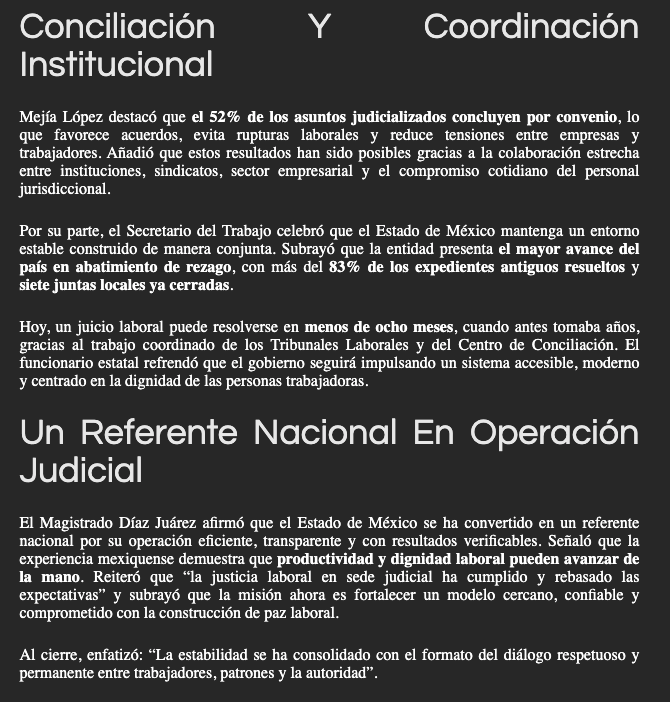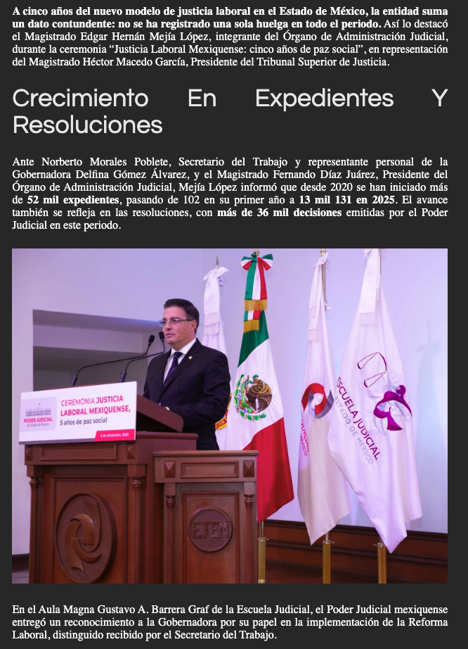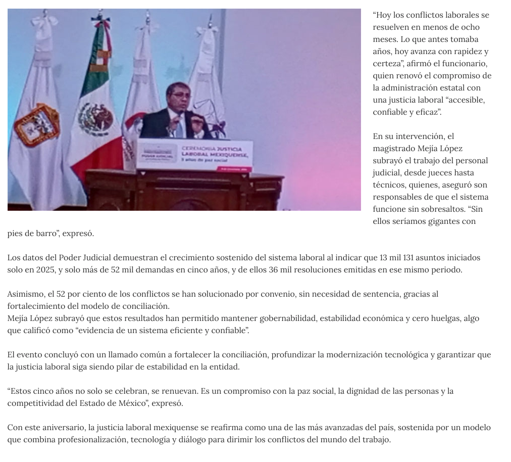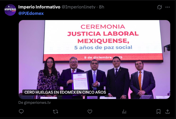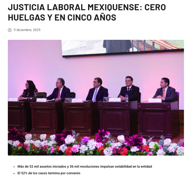 - https://ndlnoticias.com/2025/12/justicia-laboral-mexiquense-cero-huelgas-y-cifras-historicas-en-cinco-anos/