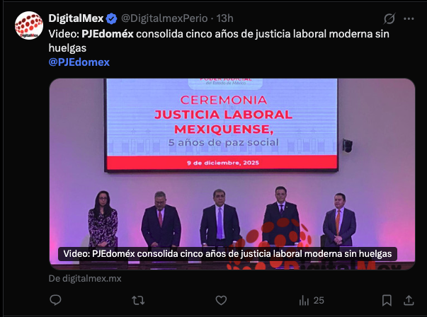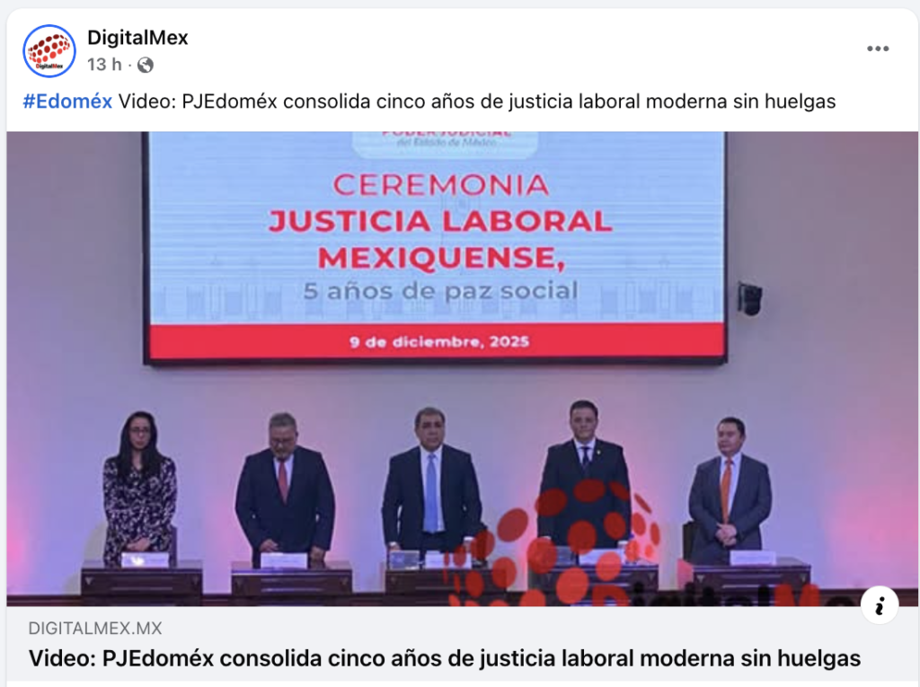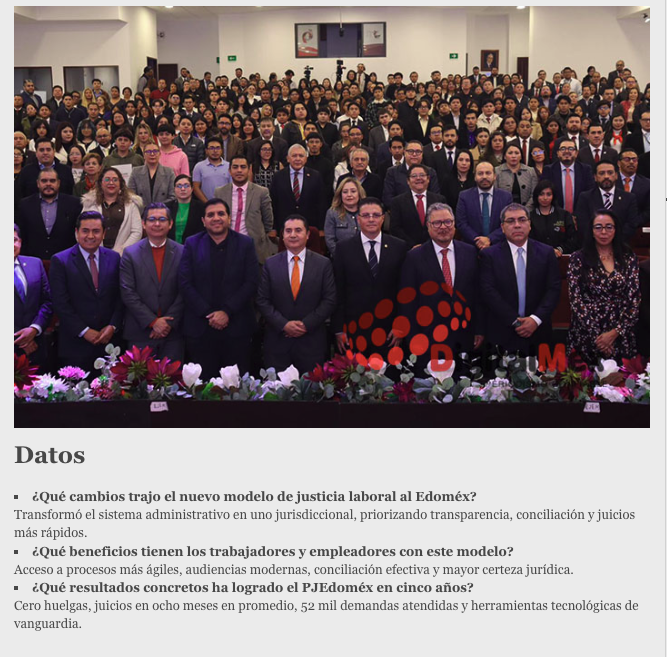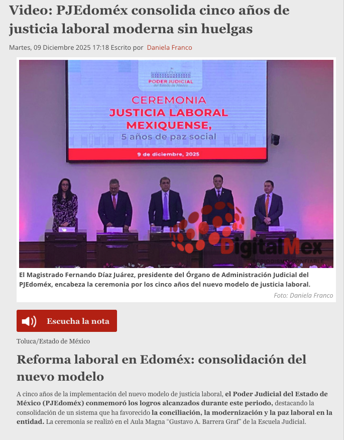 - https://www.digitalmex.mx/estado-de-mexico/story/63555/video-pjedomex-consolida-cinco-anos-justicia-laboral-moderna-sin-huelgas