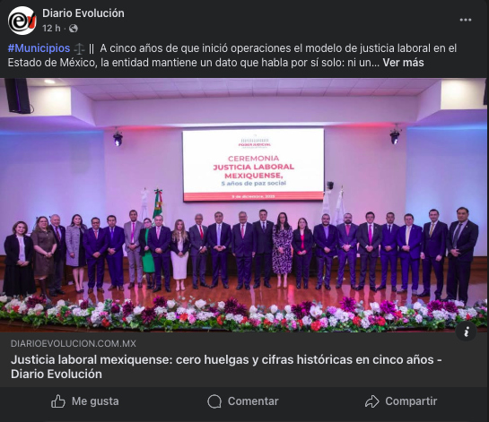 - https://www.diarioevolucion.com.mx/justicia-laboral-mexiquense-cero-huelgas-y-cifras-historicas-en-cinco-anos/