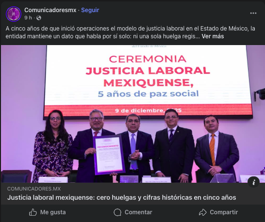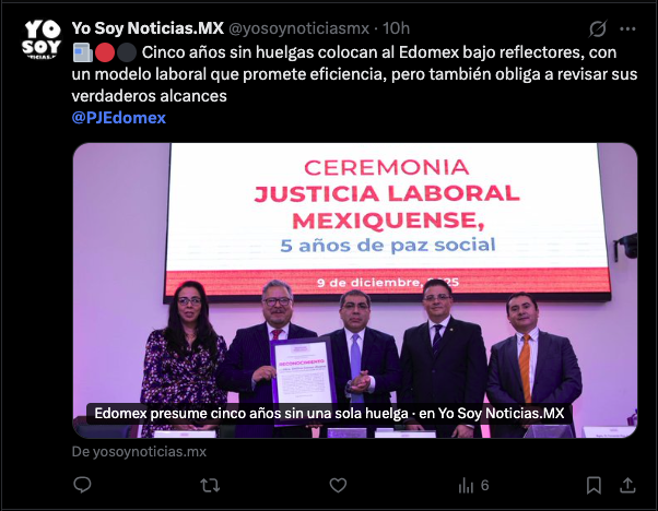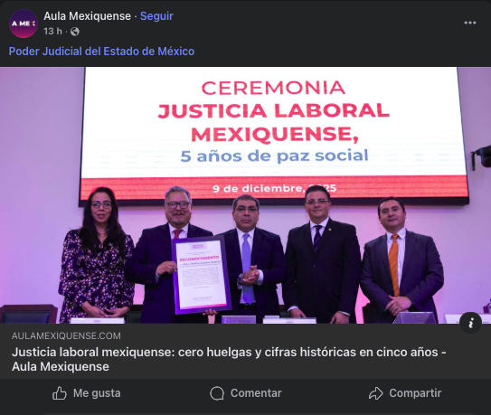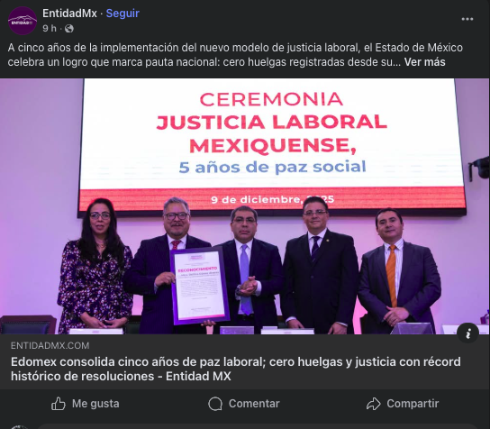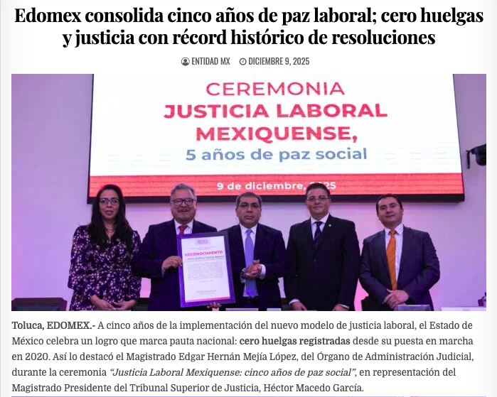 - https://entidadmx.com/2025/12/09/edomex-consolida-cinco-anos-de-paz-laboral-cero-huelgas-y-justicia-con-record-historico-de-resoluciones/