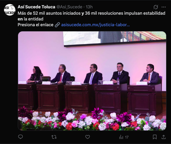 - https://asisucede.com.mx/justicia-laboral-mexiquense-cero-huelgas-y-cifras-historicas-en-cinco-anos/