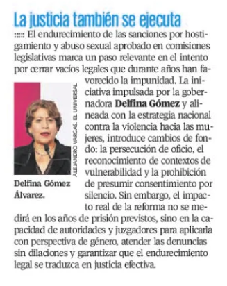 El endurecimiento de las sanciones por hostigamiento y abuso sexual aprobó en comisiones legislativas marca un paso relevante en el intento por cerrar vacíos legales que durante años han favorecido la impunidad. La iniciativa impulsada por la gobernadora Delfina Gómez y alineada con la estrategia nacional contra la violencia hacia las mujeres, introduce cambios de fondo; la persecución de oficio, el reconocimiento de contextos de vulnerabilidad y la prohibición de presumir consentimiento por silencio. Sin embargo, el impacto real de la reforma no se medirá en los años de prisión previstos, sino en la capacidad de las autoridades y juzgadores para aplicarla con perspectiva de género, atender las denuncias sin dilaciones y garantizar que el endurecimiento legal se traduzca en justicia efectiva.