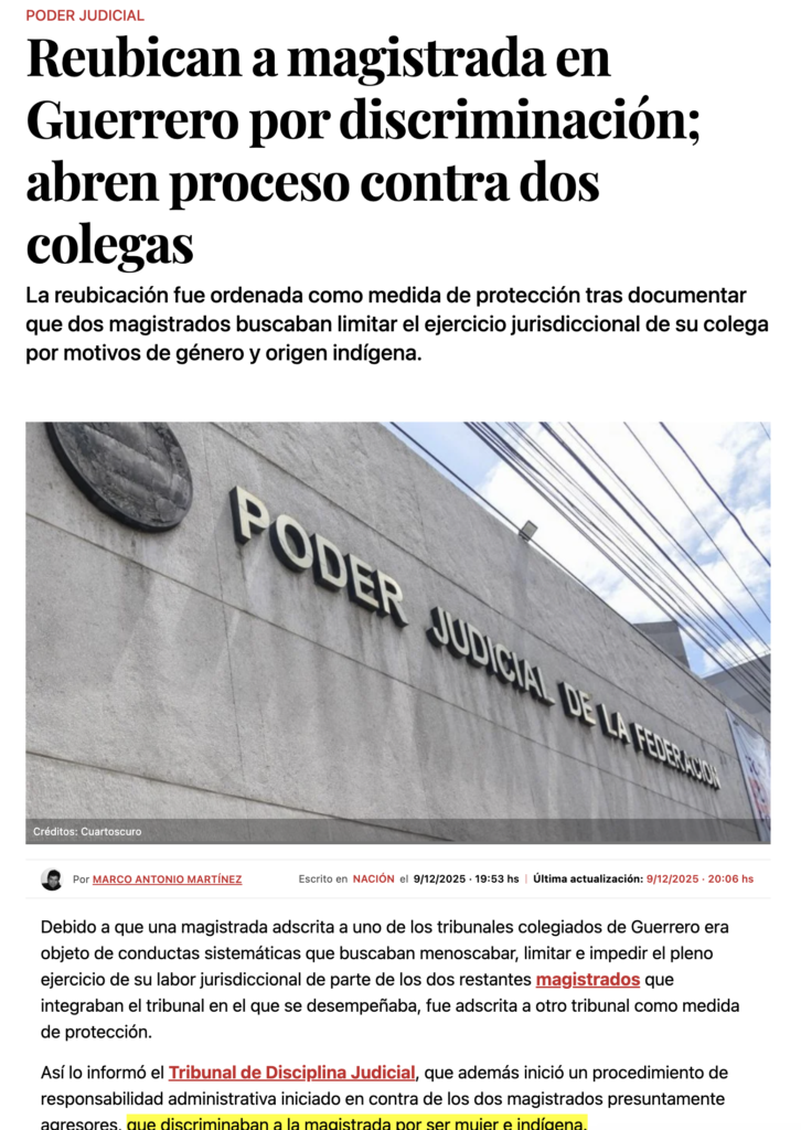 • https://lasillarota.com/nacion/2025/12/9/reubican-magistrada-en-guerrero-por-discriminacion-abren-proceso-contra-dos-colegas-573560.html
