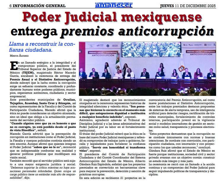 • https://diarioamanecer.com.mx/poder-judicial-mexiquense-entrega-premios-anticorrupcion/