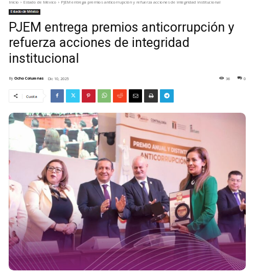 • https://8columnas.com.mx/estado-de-mexico/pjem-entrega-premios-anticorrupcion-y-refuerza-acciones-de-integridad-institucional/