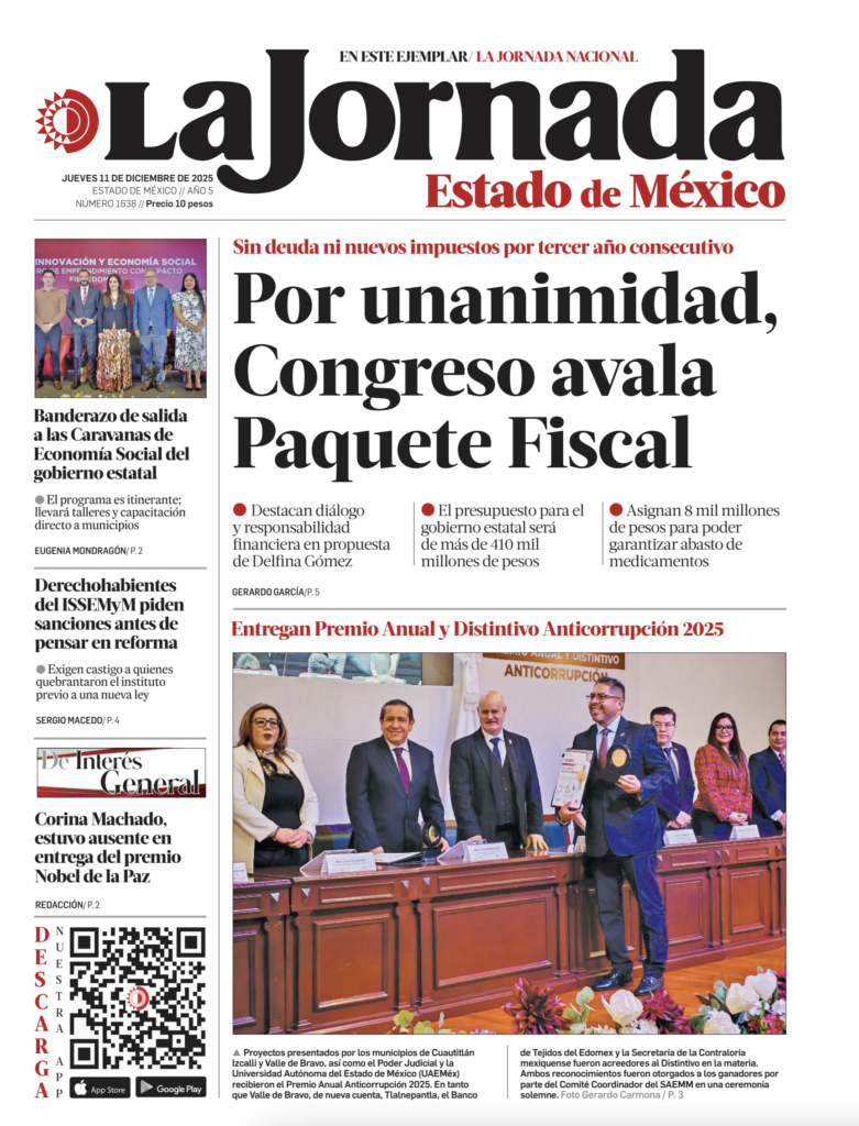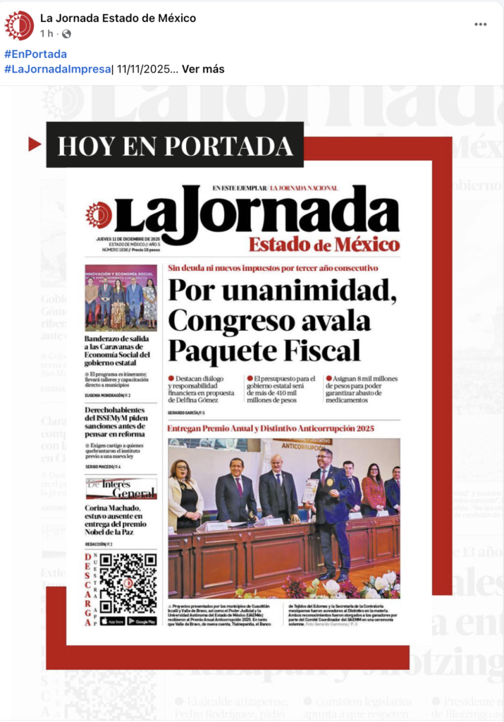 • https://www.facebook.com/LaJornadaEdoMEx/posts/pfbid02jdDMuMJDzPf6wkntK2V8hAGNqFQ9zNBqUeqS4NqziUVyHEUcUh222TLcVmConF5el