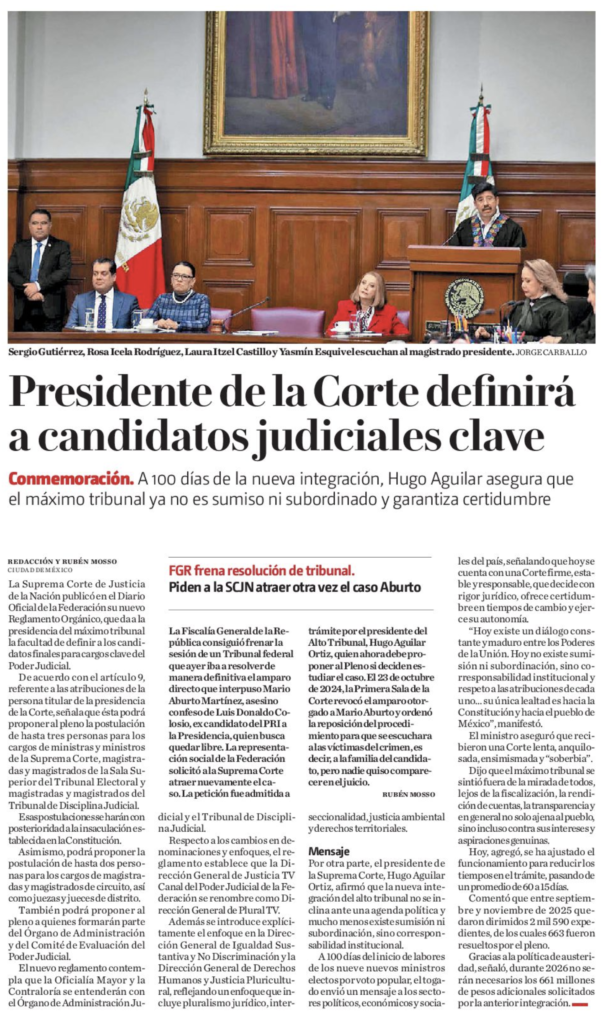 La Suprema Corte de Justicia de la Nación (SCJN) publicó en el Diario Oficial de la Federación su nuevo Reglamento Orgánico, que da a la presidencia del máximo tribunal la facultad de definir a los candidatos finales para cargos clave del Poder Judicial.