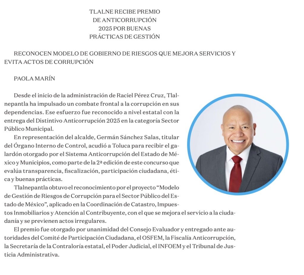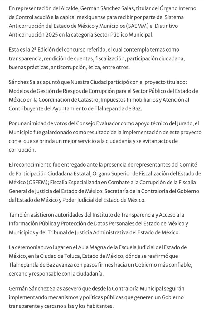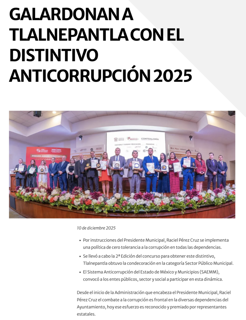- https://www.jornada.com.mx/noticia/2025/12/10/estados/galardonan-a-tlalnepantla-con-el-distintivo-anticorrupcion-2025
