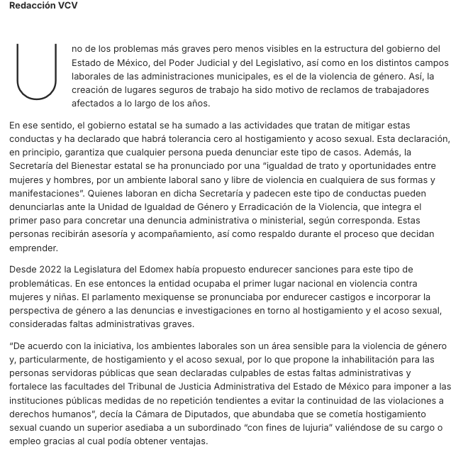 - https://viceversanoticias.com/actualidad/cero-tolerancia-la-iniciativa-que-trata-de-mitigar-el-acoso-laboral-y-sexual-en-oficinas-del-estado-de-mexico/