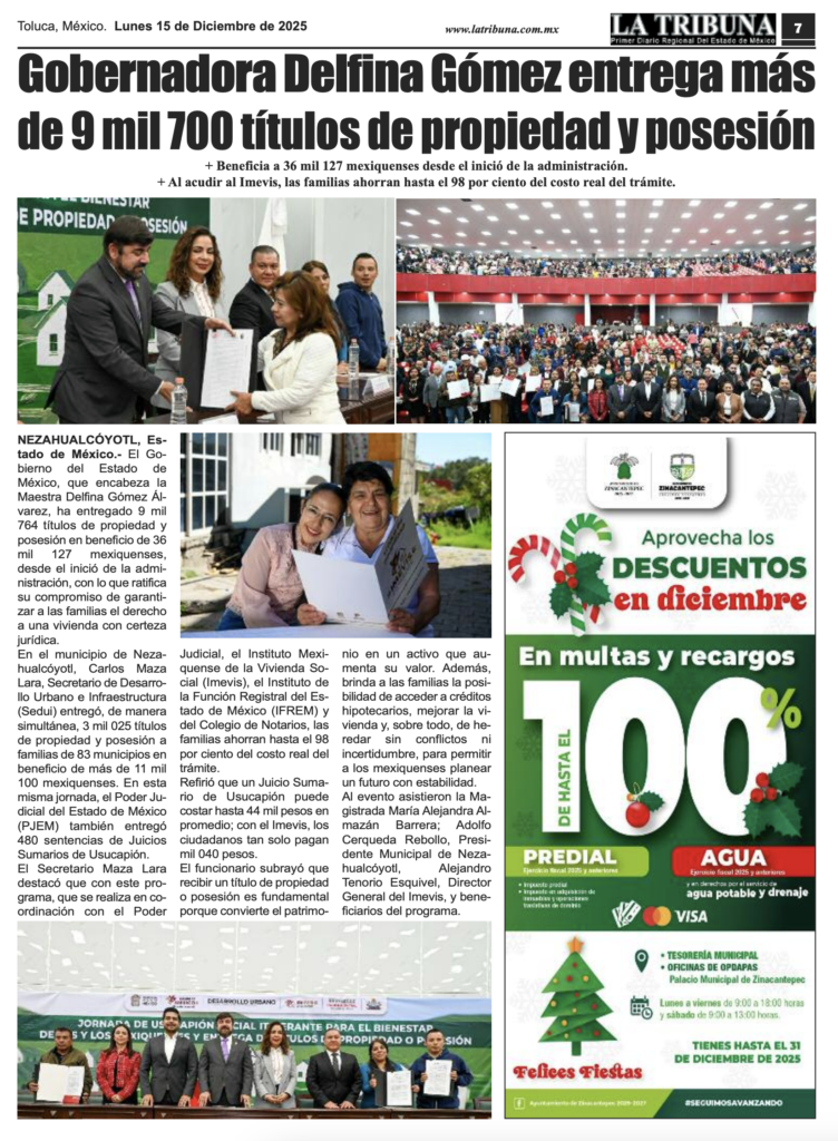 • https://elvalle.com.mx/2025/12/12/en-neza-tres-mil-familias-han-recibido-titulo-de-propiedad-en-2025/