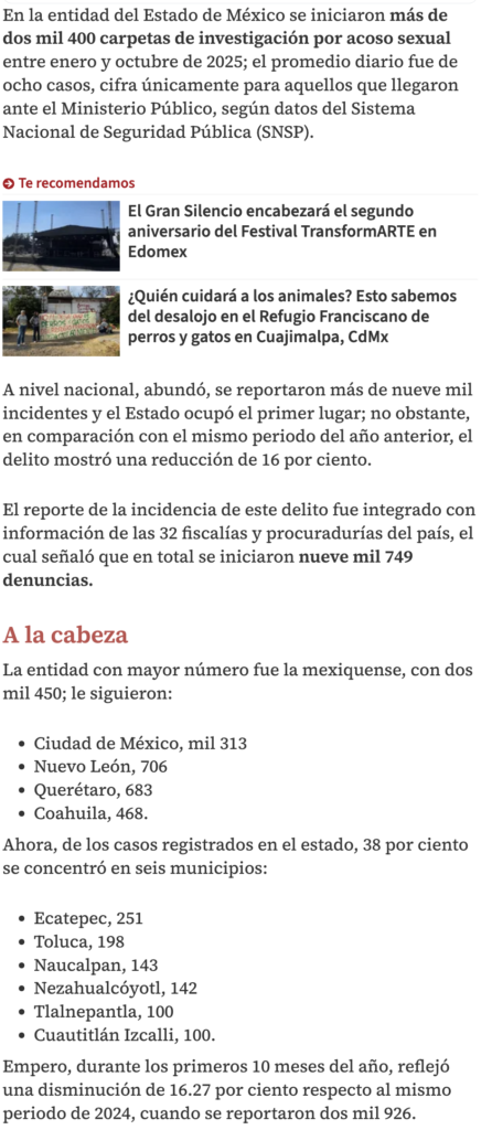 • https://www.milenio.com/policia/edomex-registra-ocho-denuncias-diarias-por-acoso-sexual-lidera-cifras