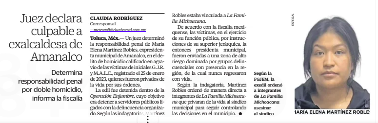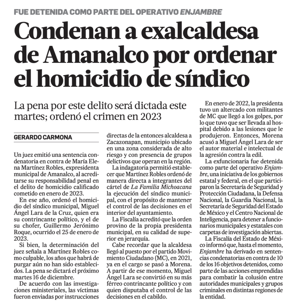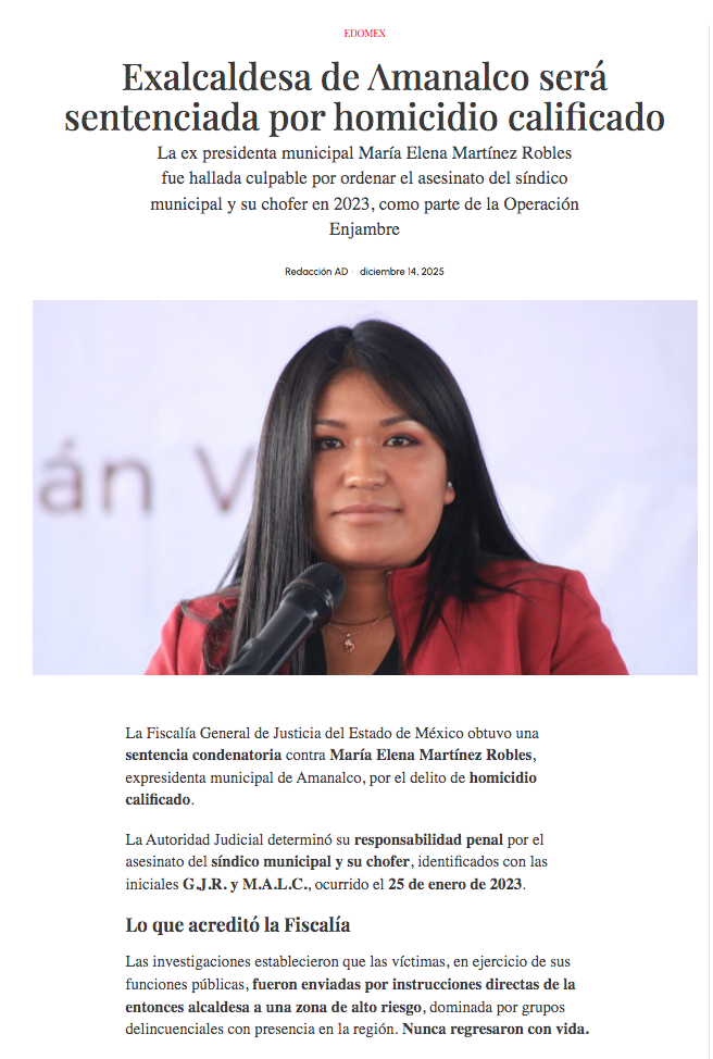 • https://www.jornada.com.mx/noticia/2025/12/14/estados/declaran-culpable-a-ex-alcaldesa-de-amanalco-por-homicidio-de-sindico