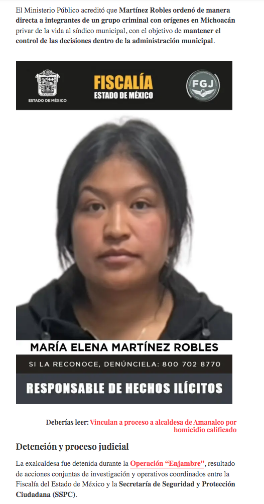 • https://www.milenio.com/policia/hallan-culpable-ex-alcaldesa-de-amanalco-por-doble-homicidio-enjambre