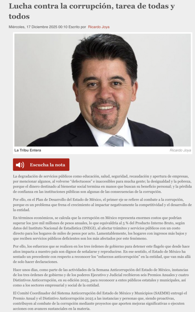 Lucha contra la corrupción, tarea de todas y todos – Ricardo Joya
