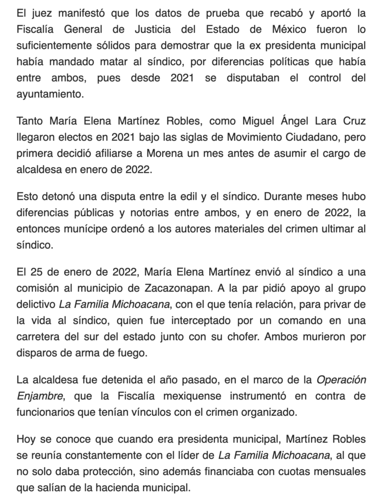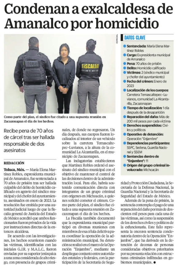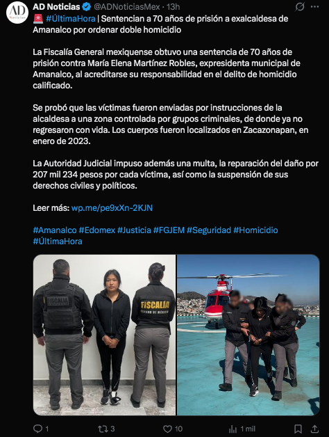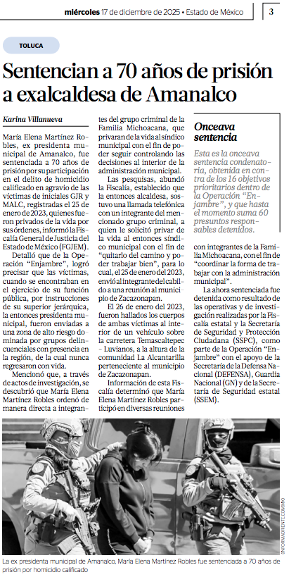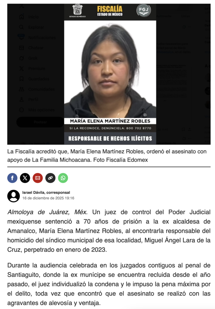 • https://mvsnoticias.com/nacional/2025/12/17/sentencian-70-anos-de-prision-maria-elena-martinez-exalcaldesa-de-amanalco-por-homicidio-de-funcionarios-724296.html