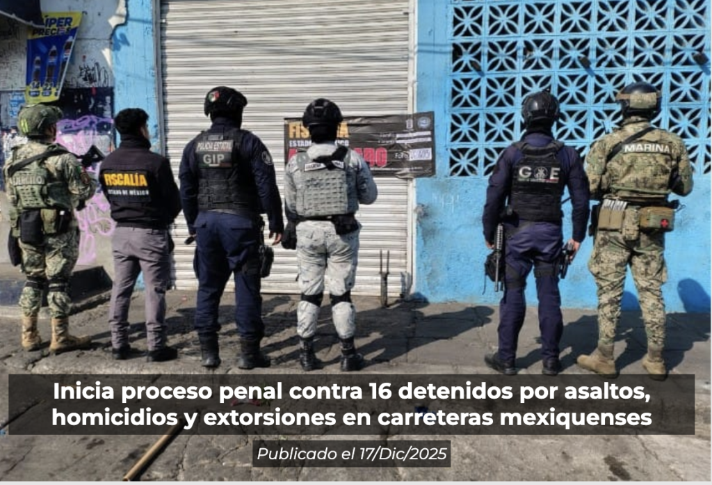 Inicia proceso penal contra 16 detenidos por asaltos, homicidios y extorsiones en carreteras mexiquenses