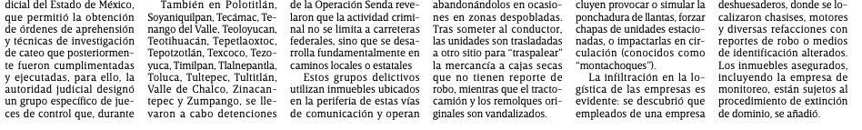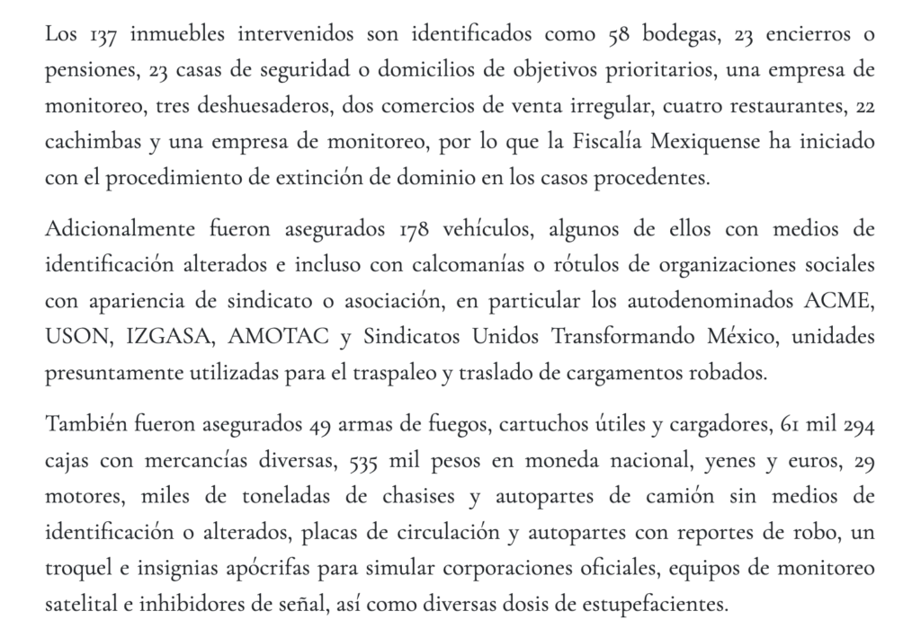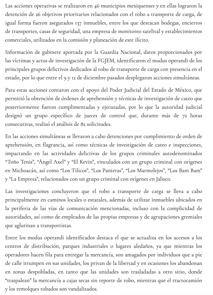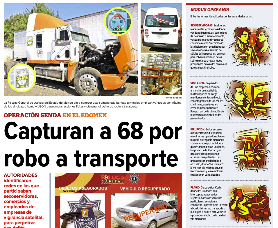 - https://digitalmex.mx/seguridad/story/63735/operacion-senda-desmantela-red-robo-transporte-carga-46-municipios-edomex