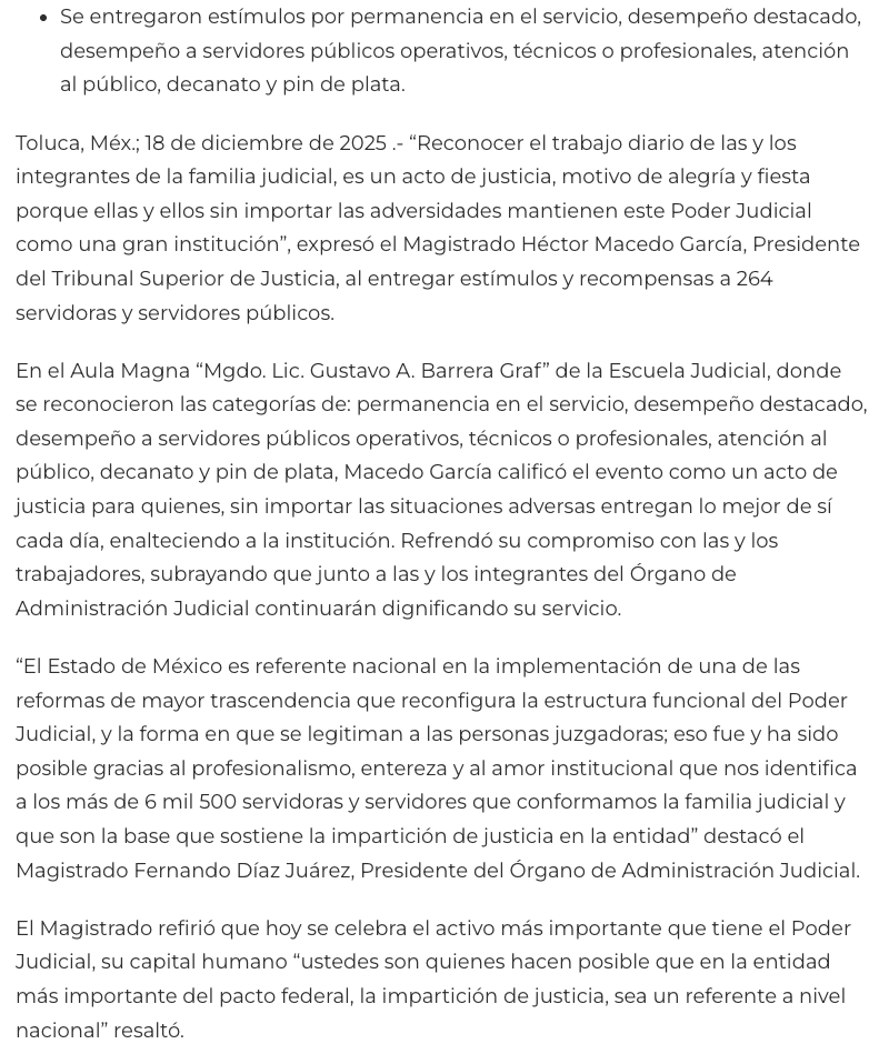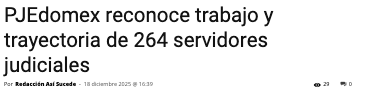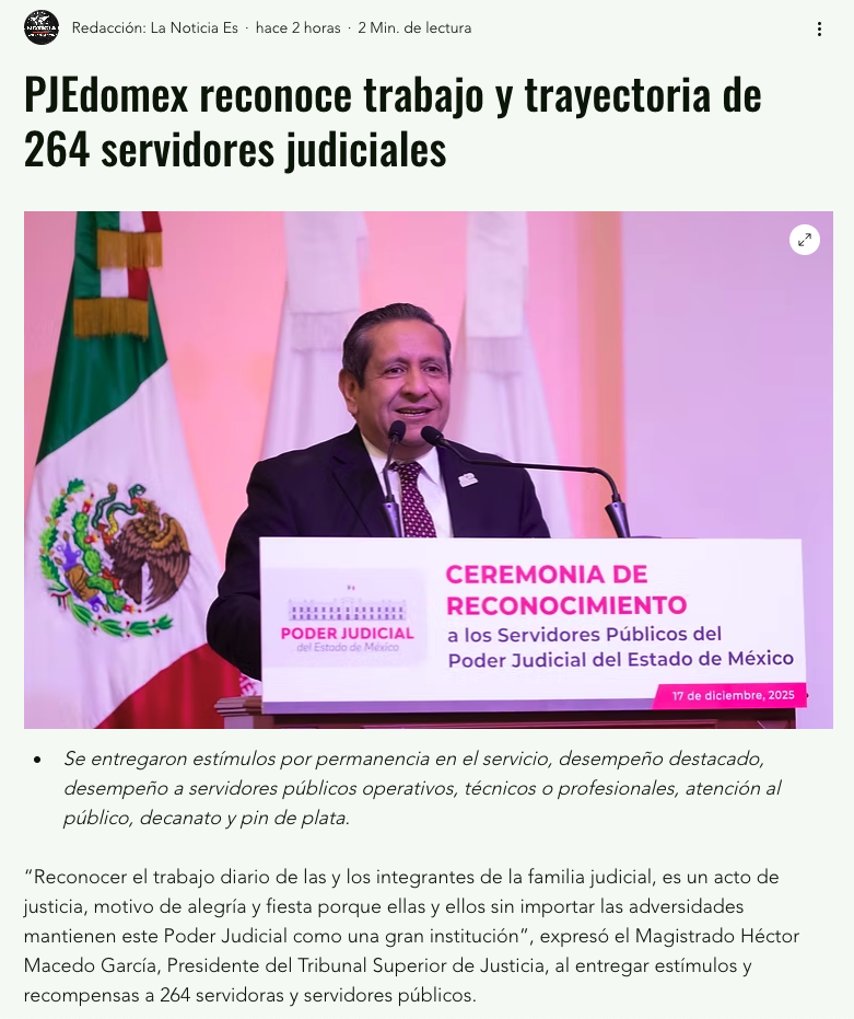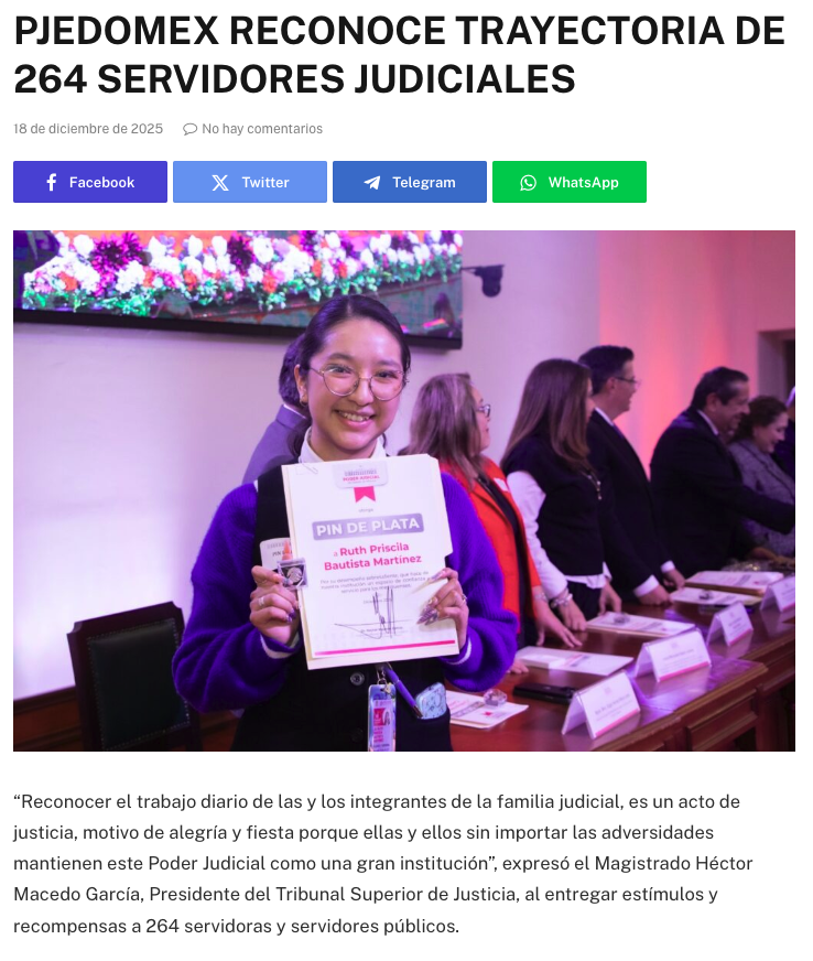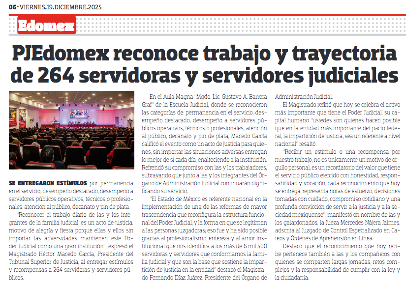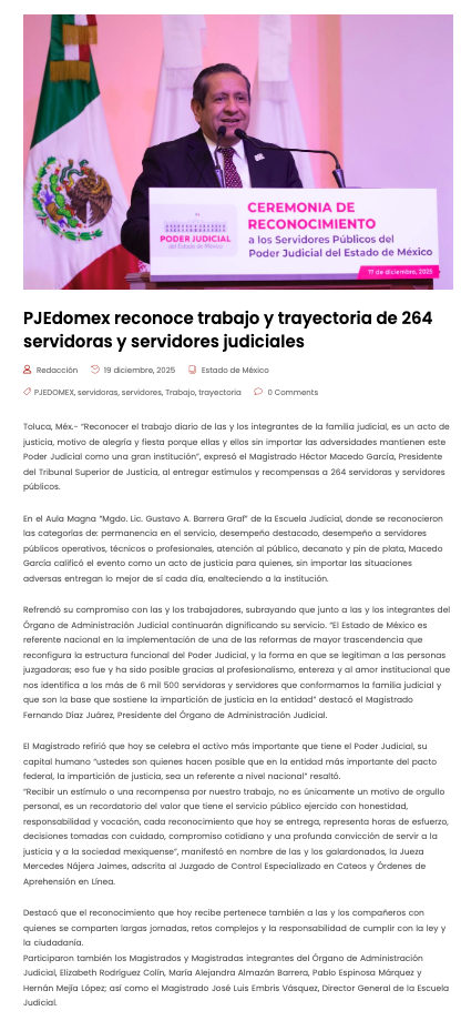 - https://ndlnoticias.com/2025/12/pjedomex-reconoce-trabajo-y-trayectoria-de-264-servidoras-y-servidores-judiciales/