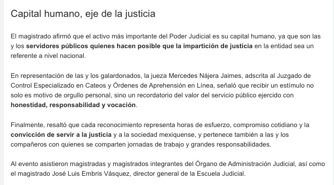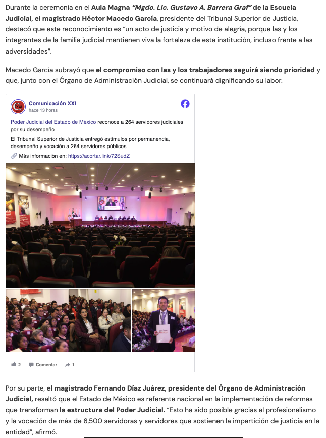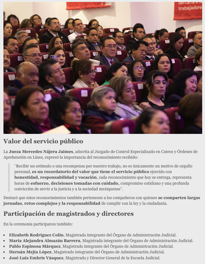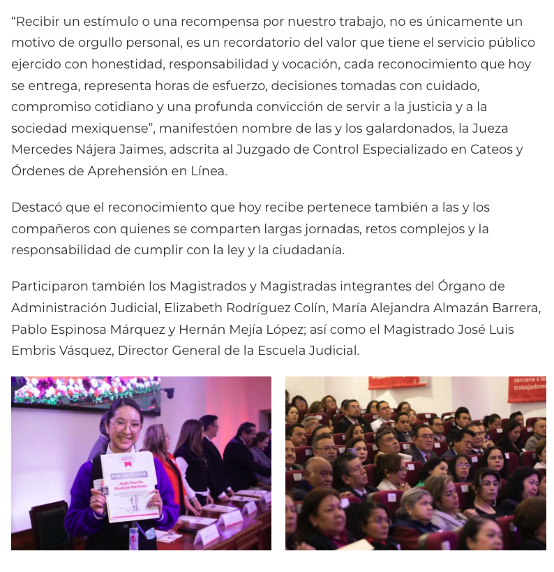 - https://www.capitaledomex.com.mx/local/reconocen-trabajo-y-trayectoria-de-264-servidoras-y-servidores-judiciales/