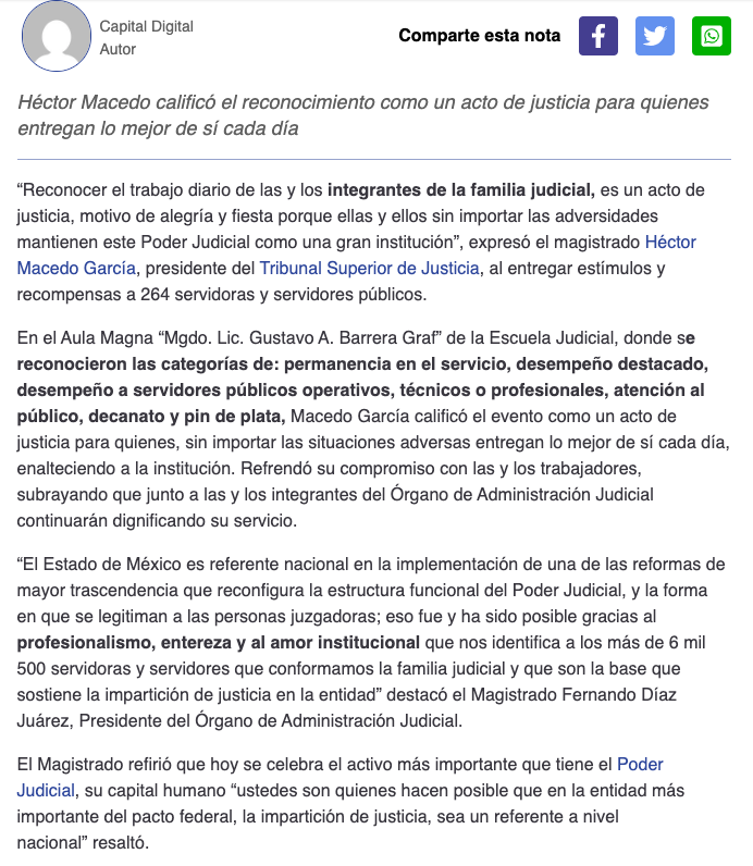 - https://diario-puntual.com.mx/hector-macedo-poder-judicial-del-edomex-reconoce-a-su-capital-humano/