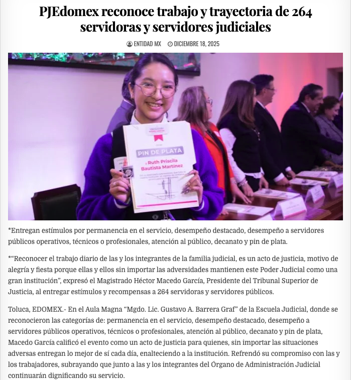 - https://entidadmx.com/2025/12/18/pjedomex-reconoce-trabajo-y-trayectoria-de-264-servidoras-y-servidores-judiciales/