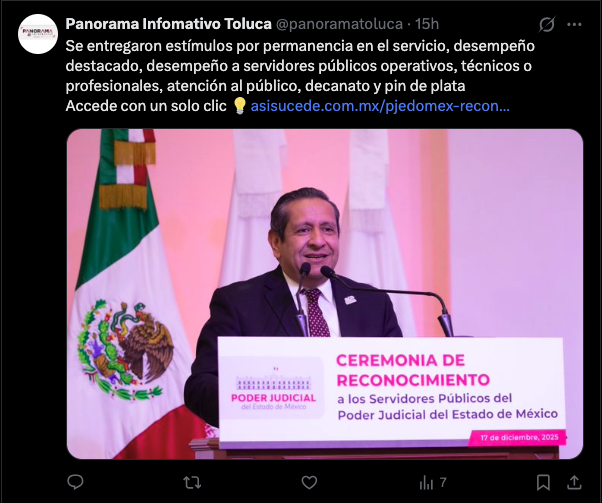- https://apocaliptic.com/estado-de-mexico/2025/12/18/reconocen-a-264-integrantes-del-poder-judicial-del-estado-de-mexico-por-su-desempeno-y-trayectoria/