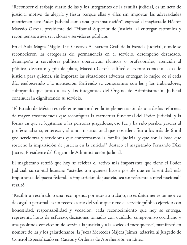 - https://aquilasnoticias.com/2025/12/18/pjedomex-reconoce-trabajo-y-trayectoria-de-264-servidoras-y-servidores-judiciales/