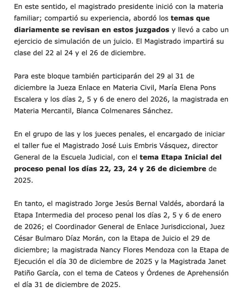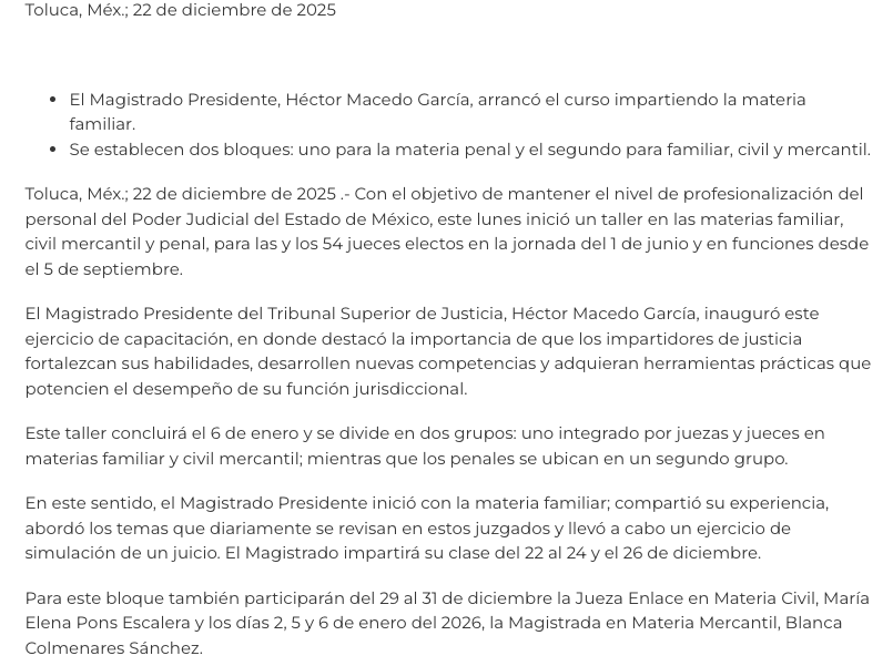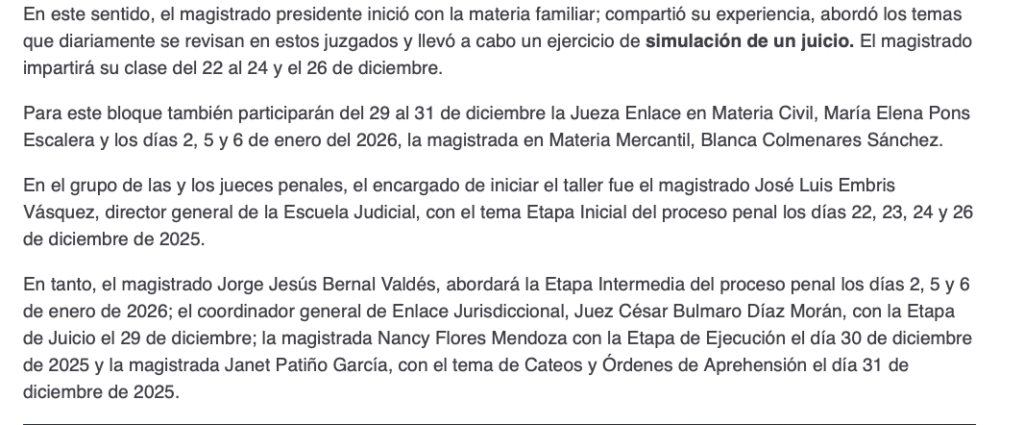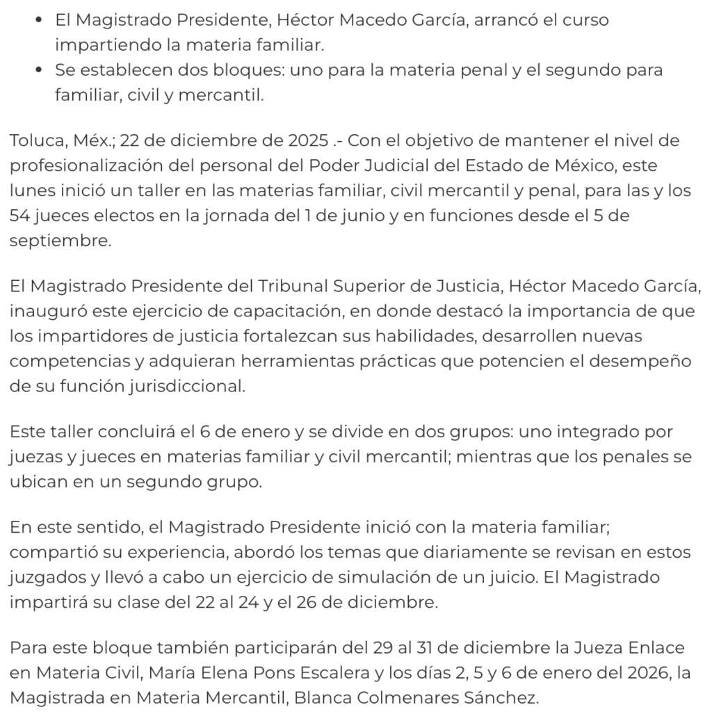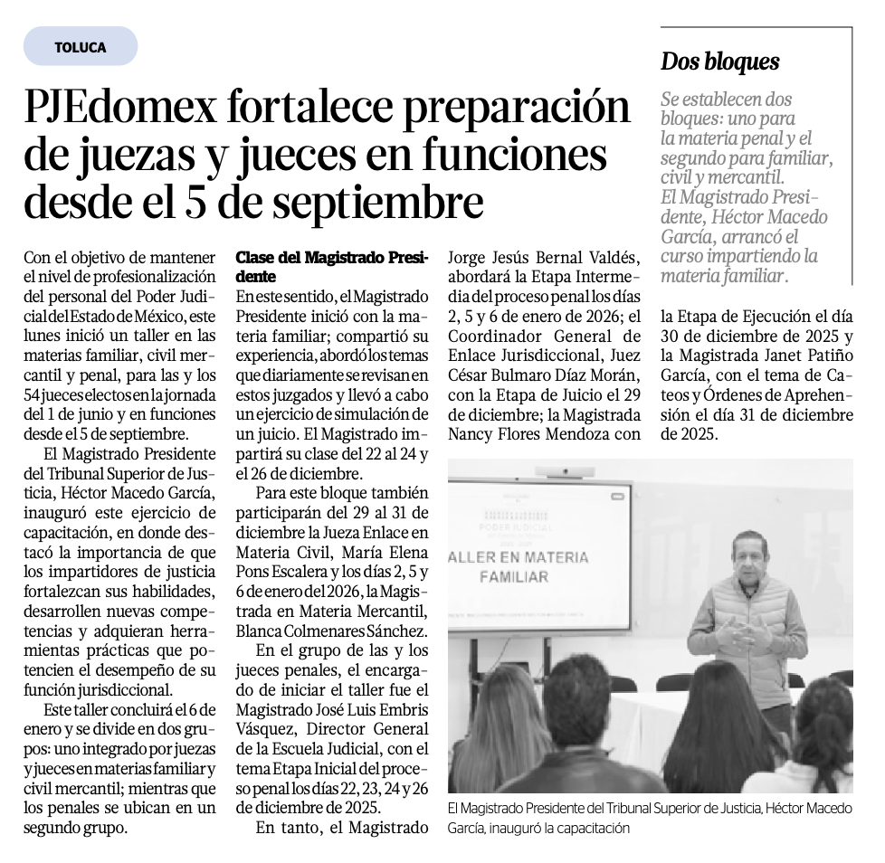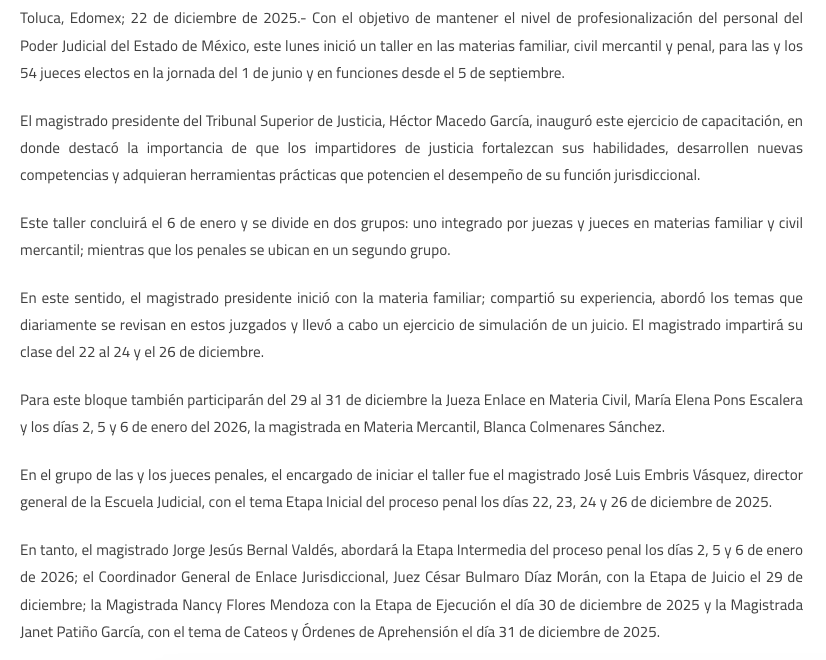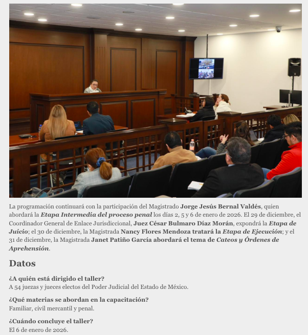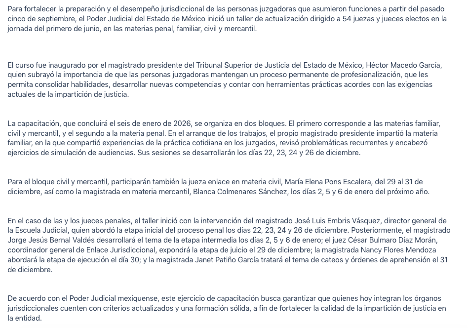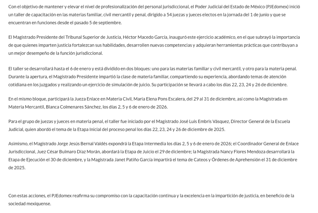 - https://ndlnoticias.com/2025/12/pjedomex-fortalece-preparacion-de-juezas-y-jueces-en-funciones-desde-el-5-de-septiembre/