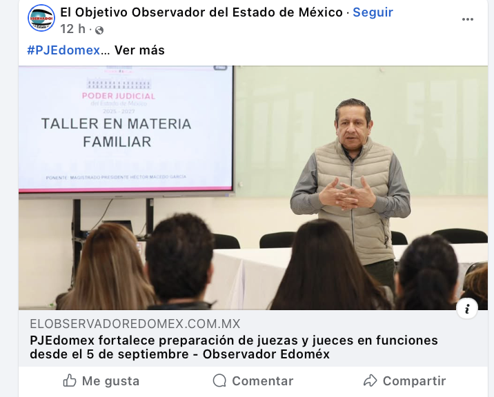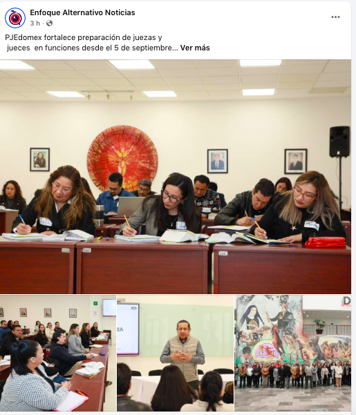 - https://ndlnoticias.com/2025/12/pjedomex-fortalece-preparacion-de-juezas-y-jueces-en-funciones-desde-el-5-de-septiembre/?fbclid=IwY2xjawO3k6tleHRuA2FlbQIxMQBzcnRjBmFwcF9pZBAyMjIwMzkxNzg4MjAwODkyAAEejUmuc5nluepeg0-MCwwaDlQRth69UvBFyKpF4ZGAdkYeVeT3PgBuONKgQ-c_aem_X_hp3ZRIT44Dle8dn5RzzA
