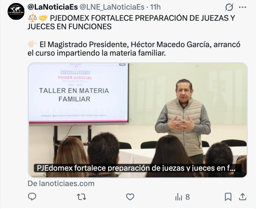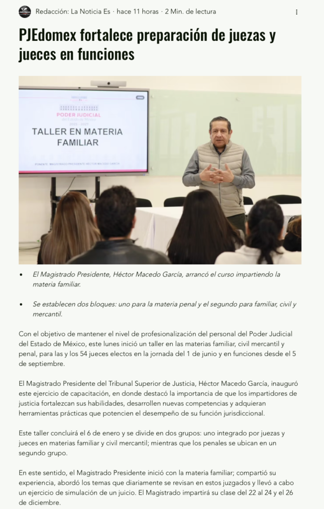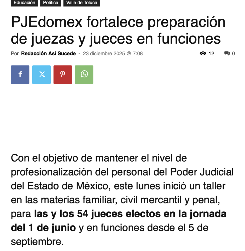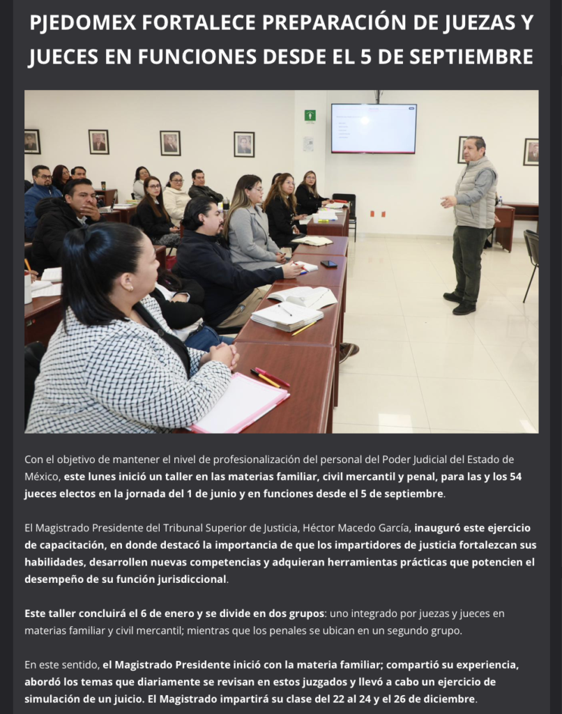 - https://www.lanoticiaes.com/post/pjedomex-fortalece-preparación-de-juezas-y-jueces-en-funciones