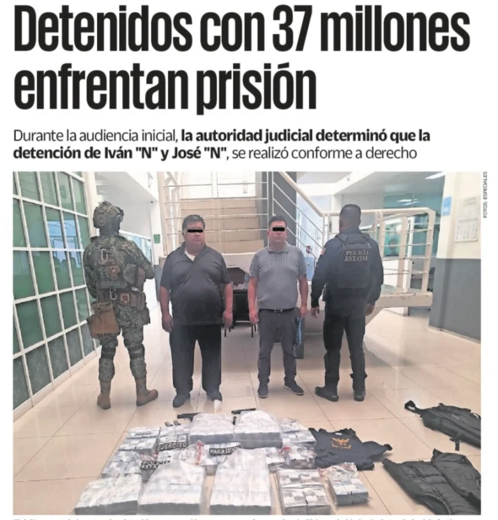 Dictan prisión preventiva a dos hombres por transportar 37 mdp en Naucalpan