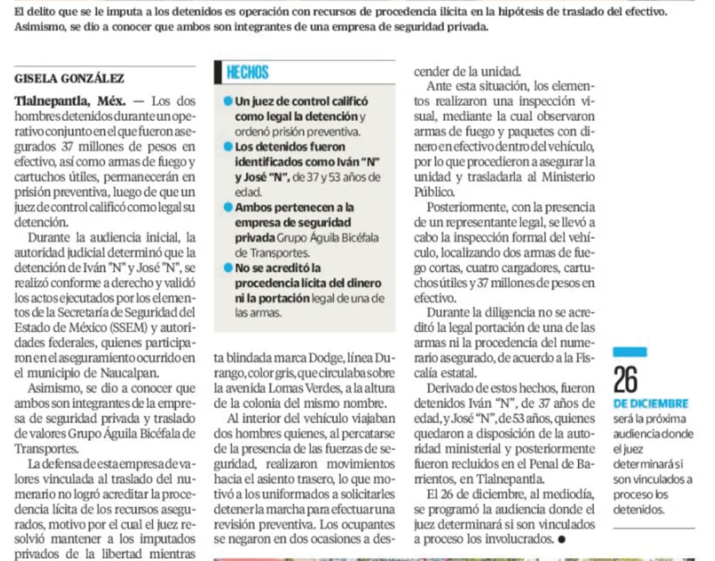 • https://www.unotv.com/estados/estado-de-mexico/fijan-prision-preventiva-a-custodios-que-trasladaban-37-mdp-en-naucalpan-de-juarez/