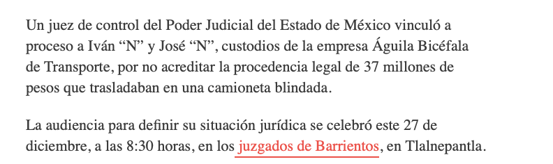 - https://www.nmas.com.mx/nacional/vinculan-a-proceso-a-custodios-que-trasladaban-37-mdp-en-edomex/