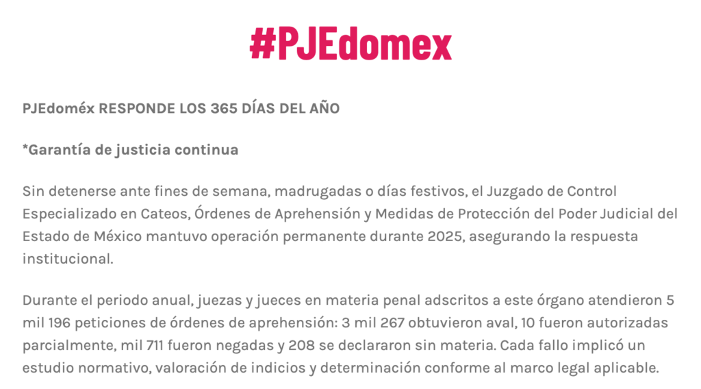 - https://apocaliptic.com/estado-de-mexico/2026/01/05/mas-de-5-mil-ordenes-de-aprehension-fueron-analizadas-por-juzgados-del-pjedomex-en-2025/