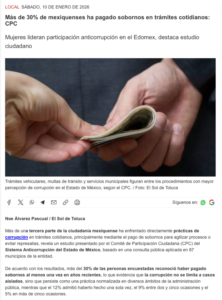 - https://oem.com.mx/elsoldetoluca/local/mas-de-30-de-mexiquenses-ha-pagado-sobornos-por-tramites-largos-y-extorsion-27590975