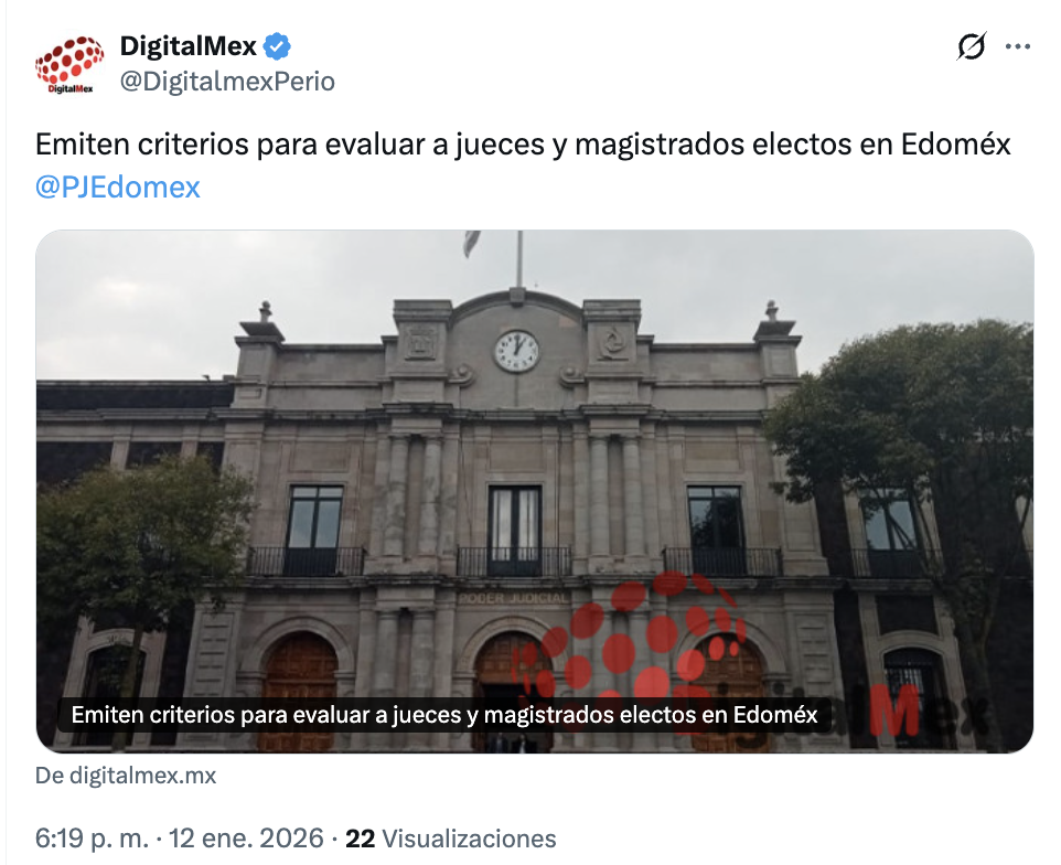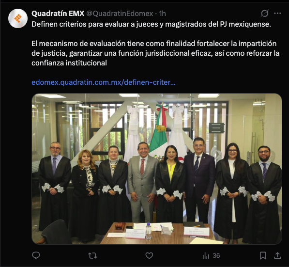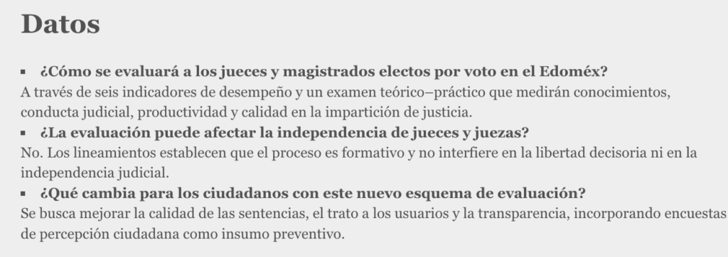 • https://reportv.com.mx/2026/01/12/edomex-fija-reglas-para-evaluar-a-jueces-y-magistrados-electos-por-voto-popular/?fbclid=IwY2xjawPTRttleHRuA2FlbQIxMABicmlkETFOc2RaR0ZtSkJoWmJnb2Fuc3J0YwZhcHBfaWQQMjIyMDM5MTc4ODIwMDg5MgABHqPB0A8auZWko1tUMHMJpdhtIgYOnXmjpp875AvSB7Aj_-AZo0cX2M-nRCCh_aem_AwaSv15OUUbDX6yz1knZKw