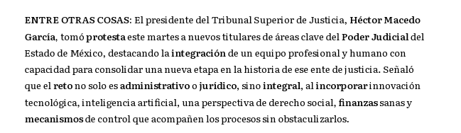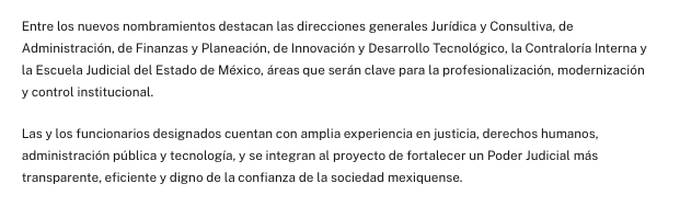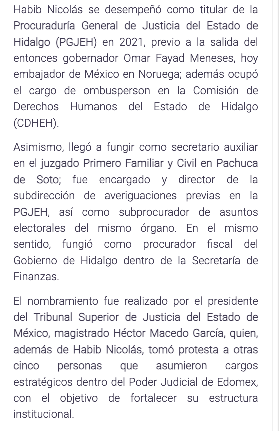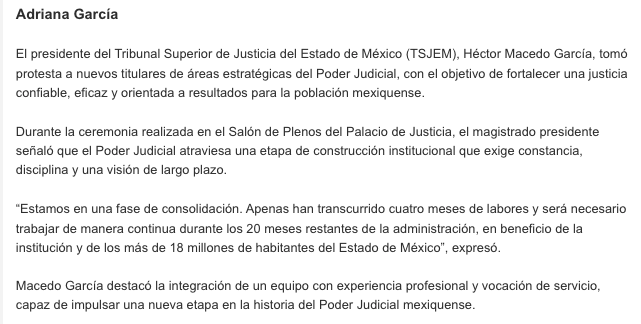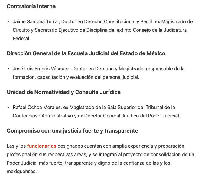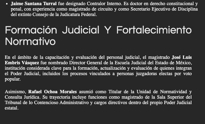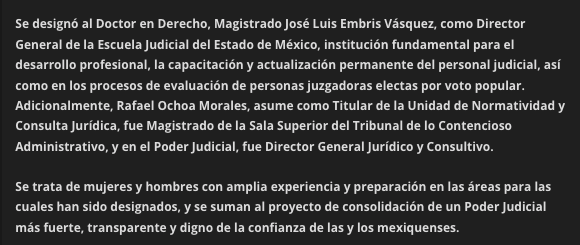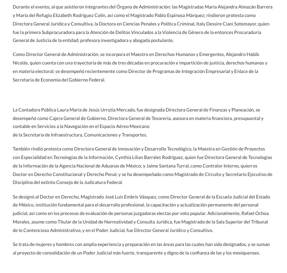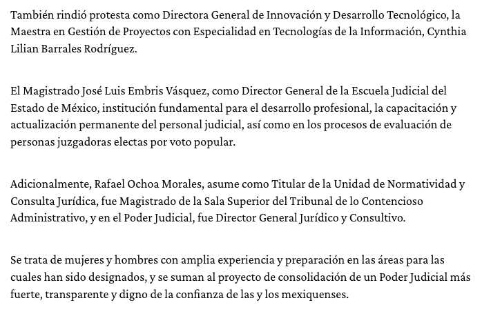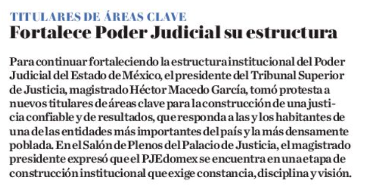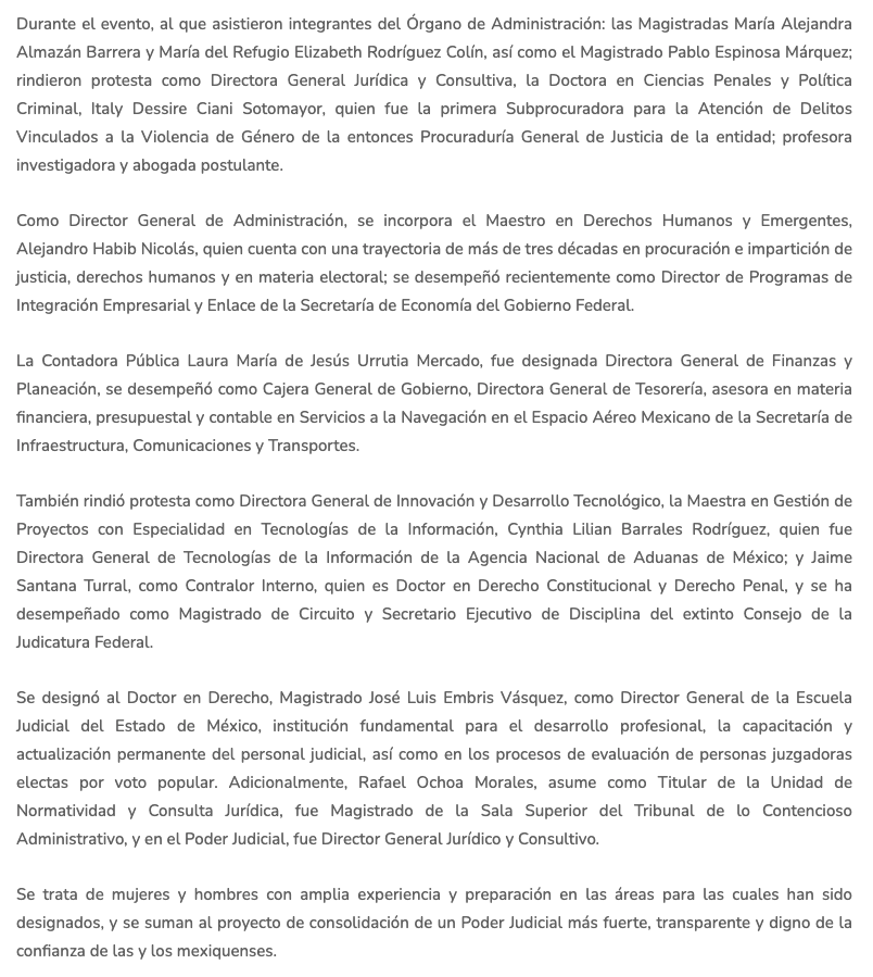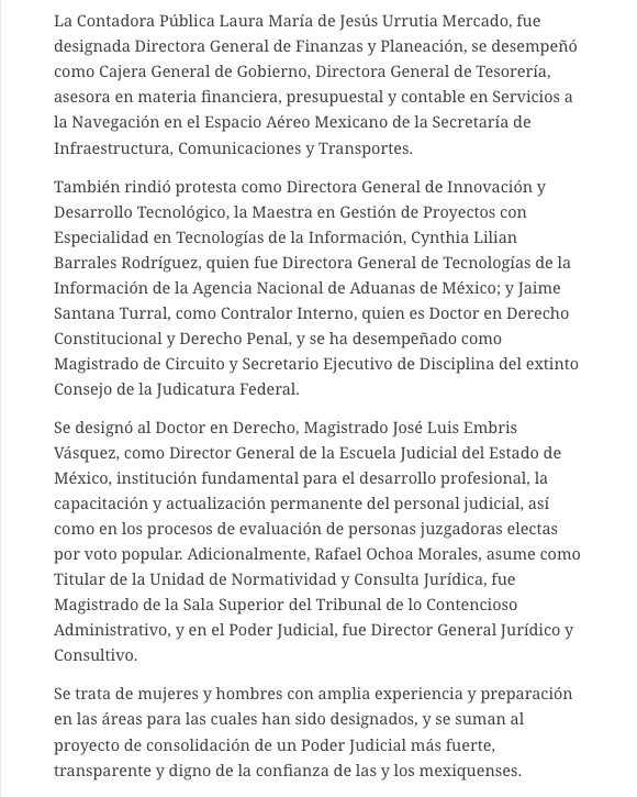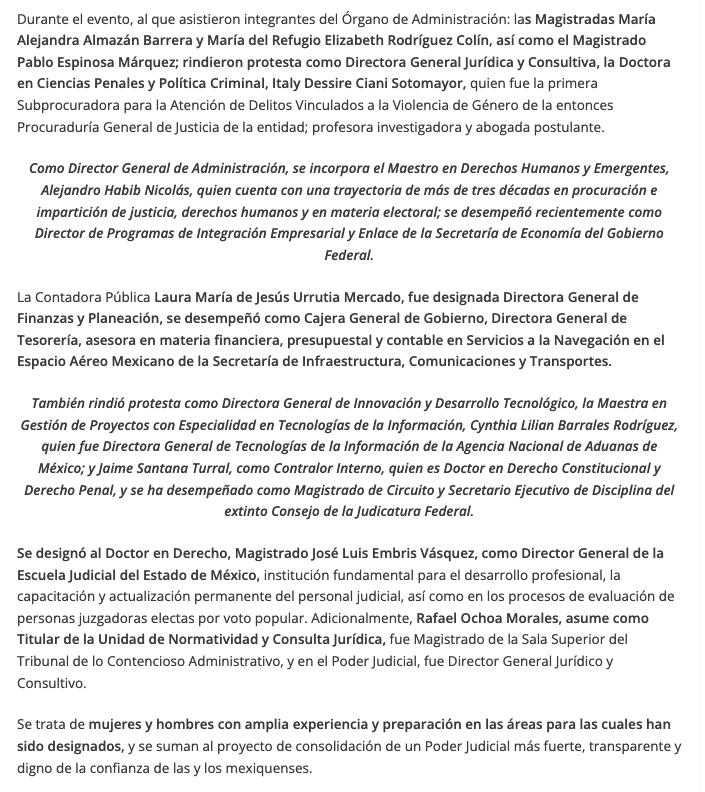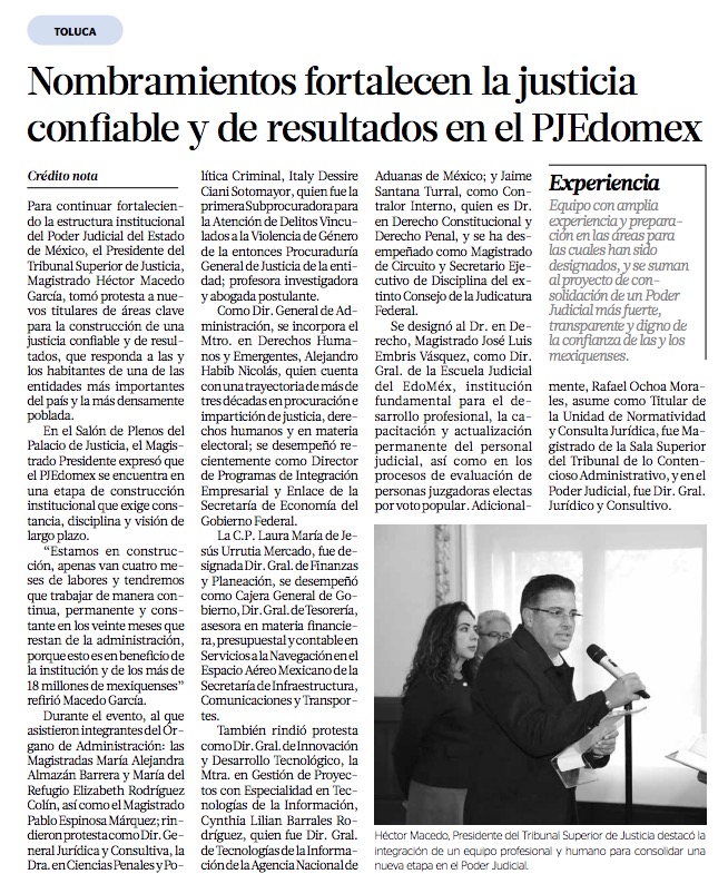 • https://www.lanoticiaes.com/post/nombramientos-fortalecen-la-justicia-confiable-y-de-resultados-en-el-pjedomex