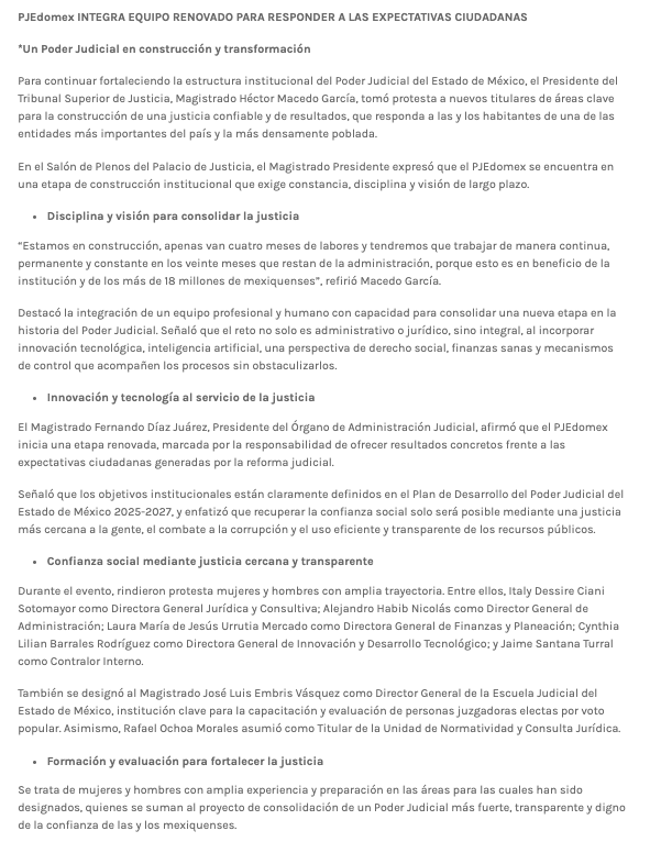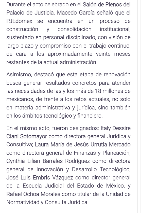 • https://informativomexiquense.com/edomex/pjedomex-fortalece-su-estructura-con-nuevos-nombramientos-y-apuesta-por-la-innovacion