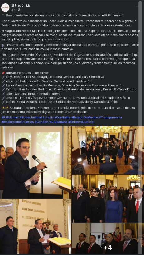• https://comunicadores.mx/2026/01/13/nombramientos-fortalecen-la-justicia-confiable-y-de-resultados-en-el-pjedomex/?fbclid=IwY2xjawPUbO5leHRuA2FlbQIxMQBicmlkETFRUzV5SGE5UGN4ZGE4UGlWc3J0YwZhcHBfaWQQMjIyMDM5MTc4ODIwMDg5MgABHtlR7E3lQ4rBxsIWRVosElNUcghImMzqj3UzmW6eEI6WXYqDmIG9fucoA6Sh_aem_JQTH7cMkgQ0fmyTbYQLj_g
