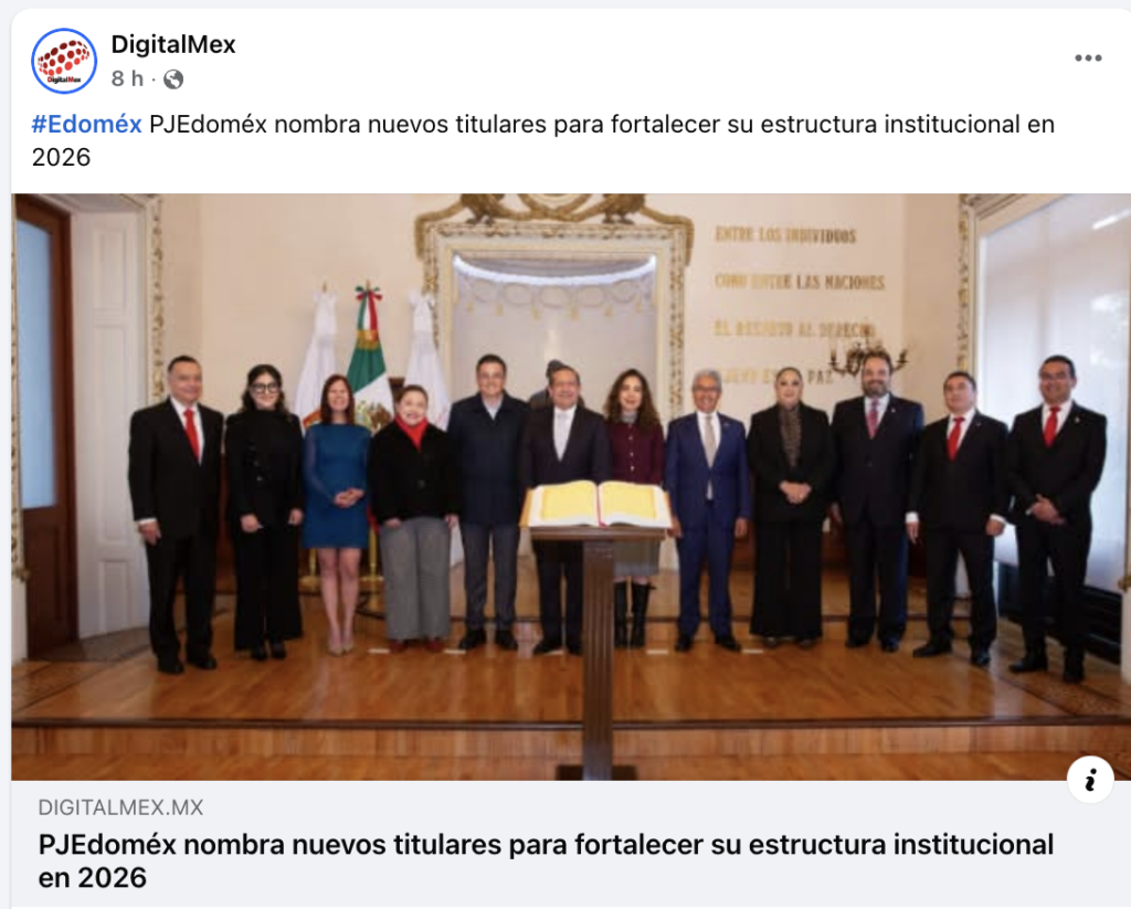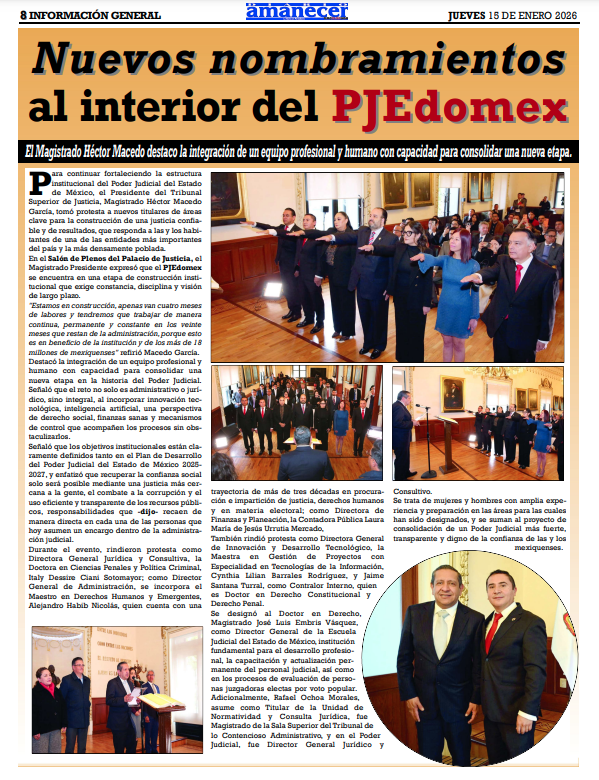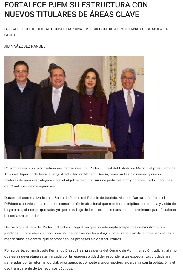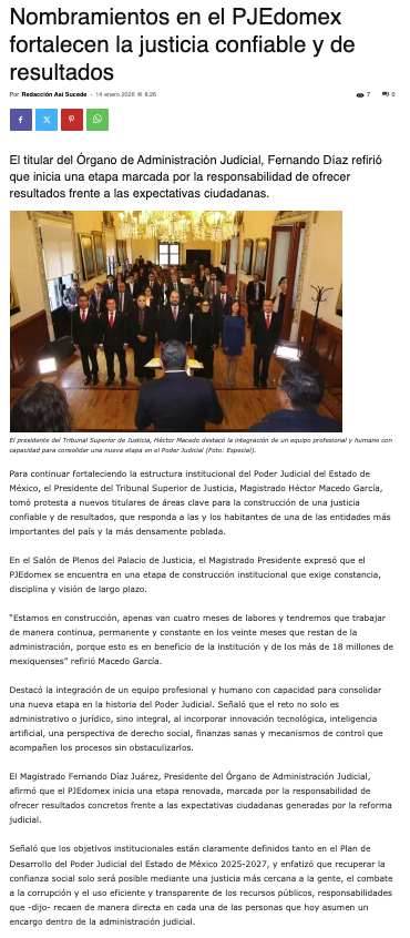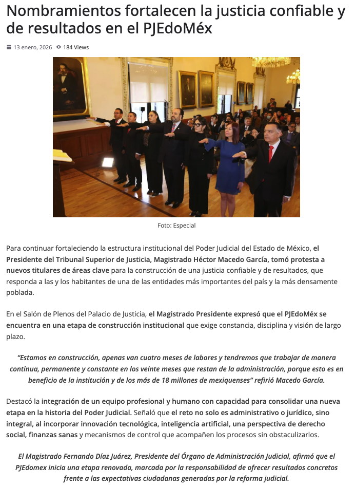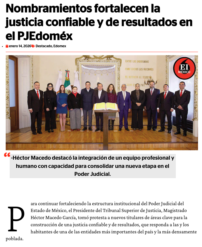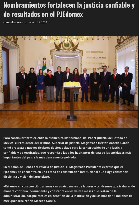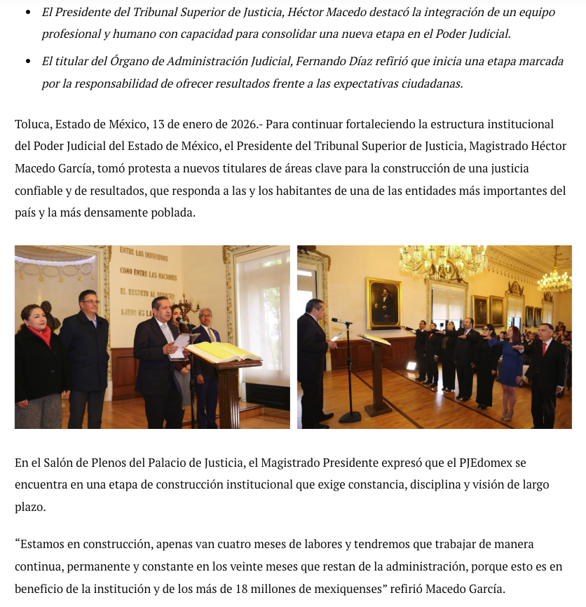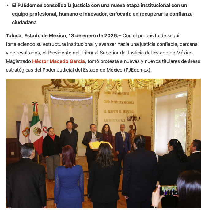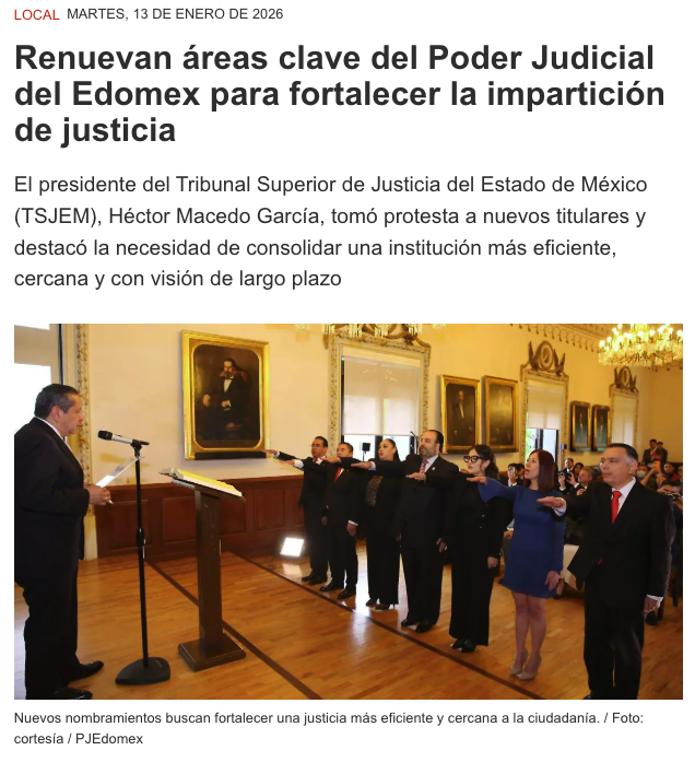 • https://nuevoenlace.mx/estatal/2026/01/14/nombramientos-fortalecen-la-justicia-confiable-y-de-resultados-en-el-pjedomex/
