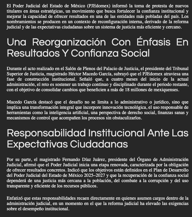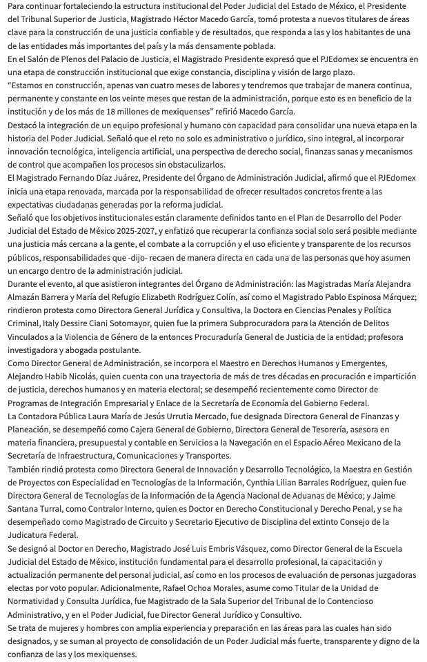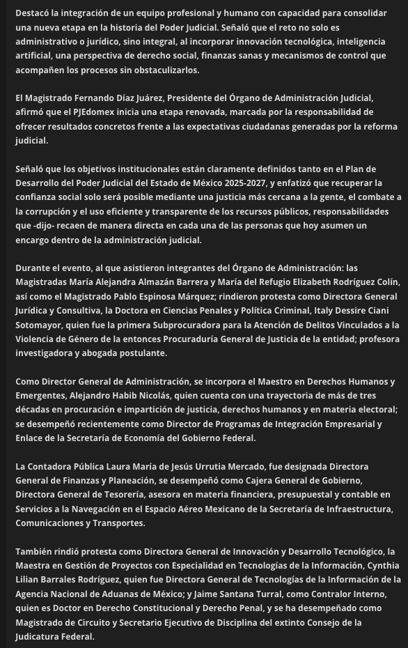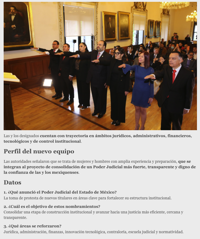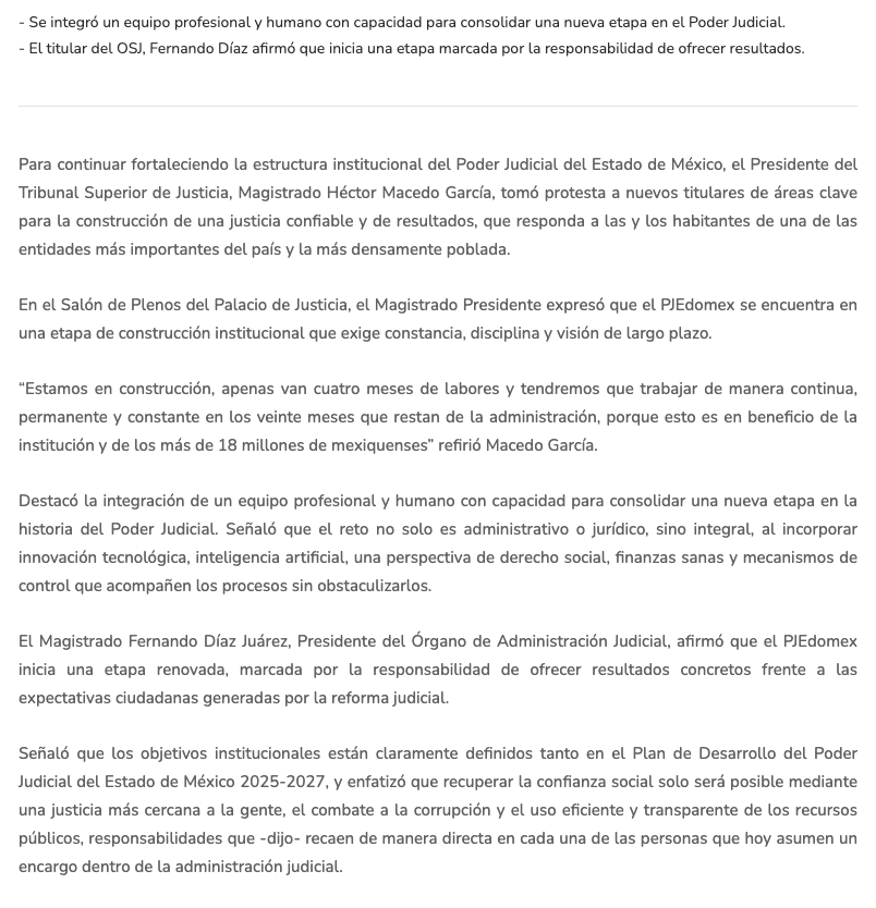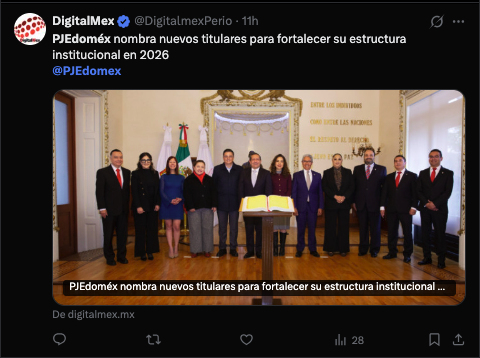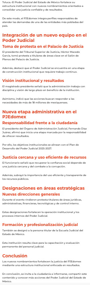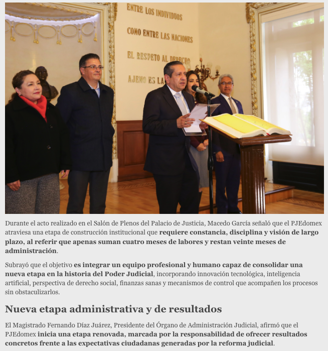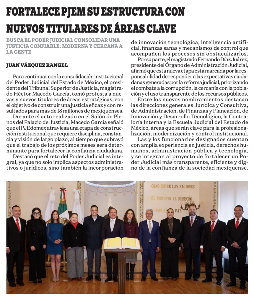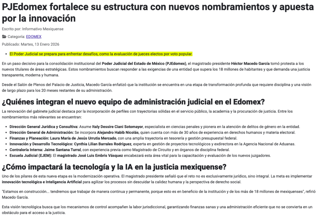 • https://nuevoenlace.mx/estatal/2026/01/14/nombramientos-fortalecen-la-justicia-confiable-y-de-resultados-en-el-pjedomex/