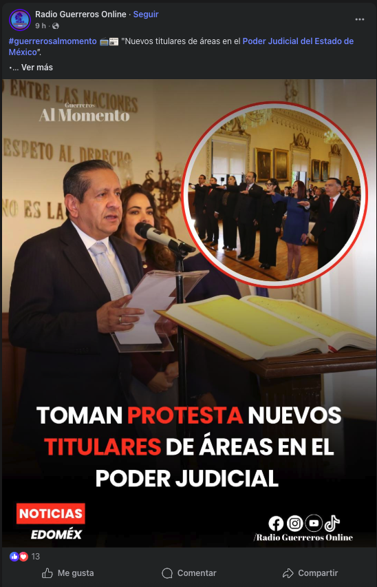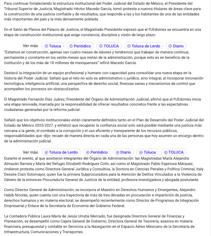 • https://mvt.com.mx/nombramientos-fortalecen-una-justicia-confiable-y-de-resultados-en-el-poder-judicial-del-estado-de-mexico/?fbclid=IwY2xjawPUbbBleHRuA2FlbQIxMQBicmlkETFUcEd5RlcwNUpPNGF3ZUJmc3J0YwZhcHBfaWQQMjIyMDM5MTc4ODIwMDg5MgABHo9cEPHlvEpdc-vkCOcjOz-2zl_SRekizwlpLRPU7oj2JQbf_qf-8kjDks08_aem_ISEONkocqKWSzAFSXWudQQ