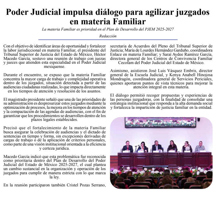 - https://agendainformativa.com.mx/2026/15/01/pjedomex-dialogo-con-juezas-y-jueces-para-fortalecer-la-materia-familiar/