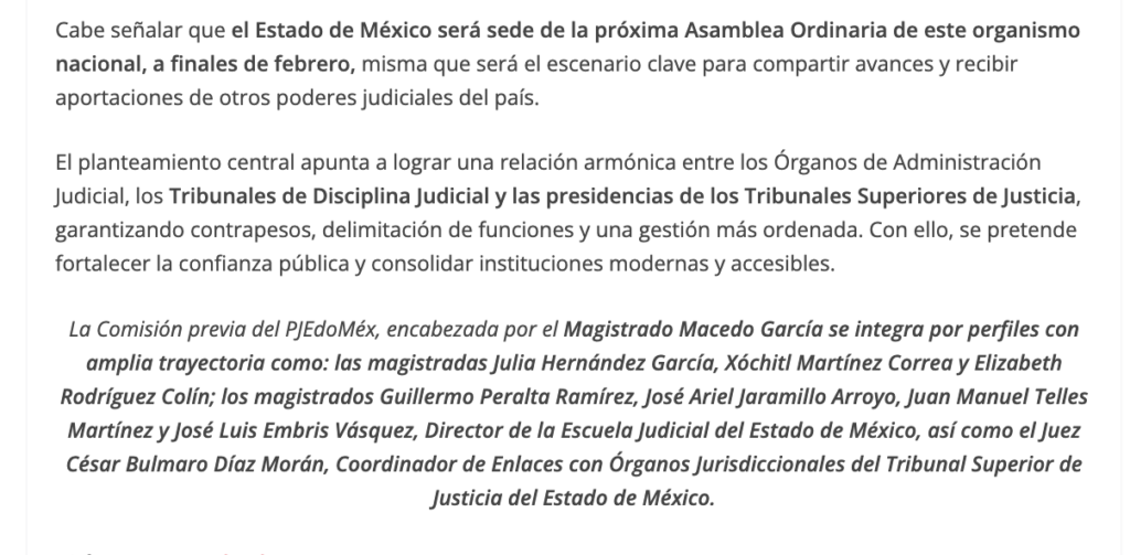 - https://asisucede.com.mx/poder-judicial-del-estado-de-mexico-inicia-trabajos-para-ley-organica-modelo-nacional/